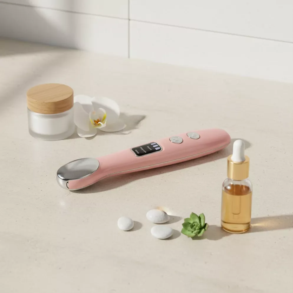 Using a combination of heat therapy (104°F–122°F) and vibration massage, this tool helps relieve eye strain, dryness, and fatigue while improving circulation. The warm compress promotes better absorption of your favorite eye creams and serums, leaving your skin smoother, firmer, and glowing. Compact and sleek, it fits easily into your beauty bag — perfect for home, office, or travel use.