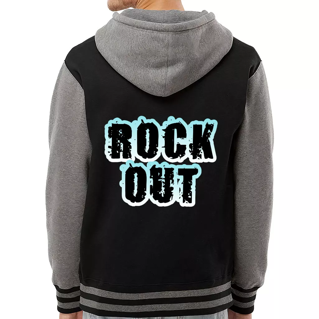 Rock Out Varsity Hoodie – Trendy Zip Hoodie – Best Print Hooded Sweatshirt