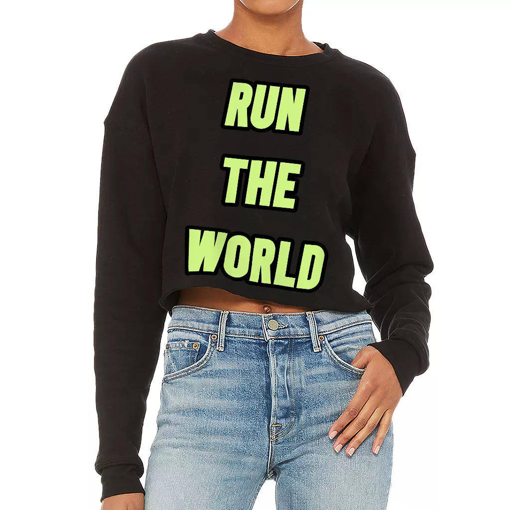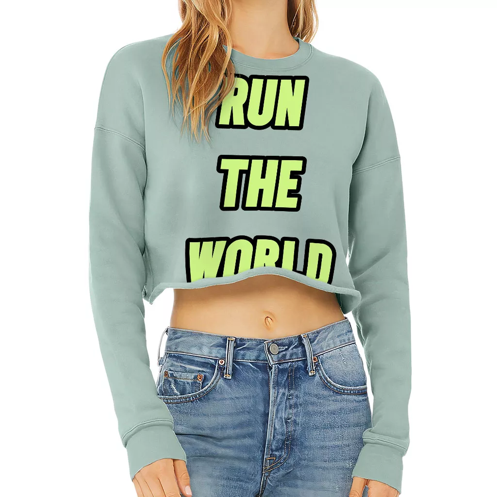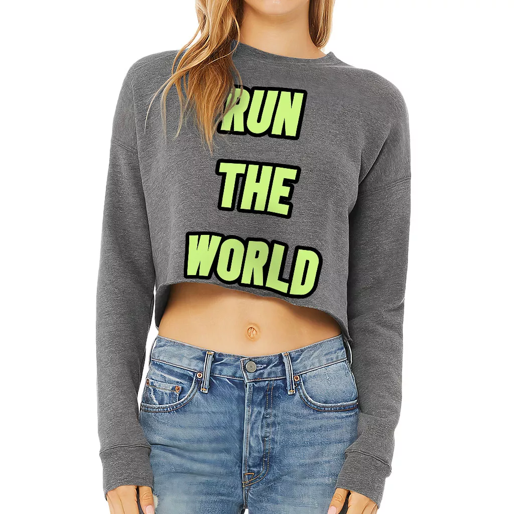 Run the World Cropped Sweatshirt – Best Quote Women’s Sweatshirt – Cool Graphic Crop Crew Sweatshirt