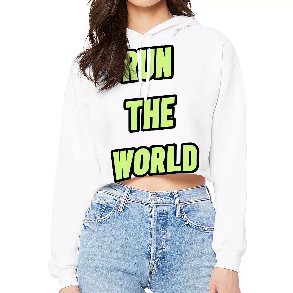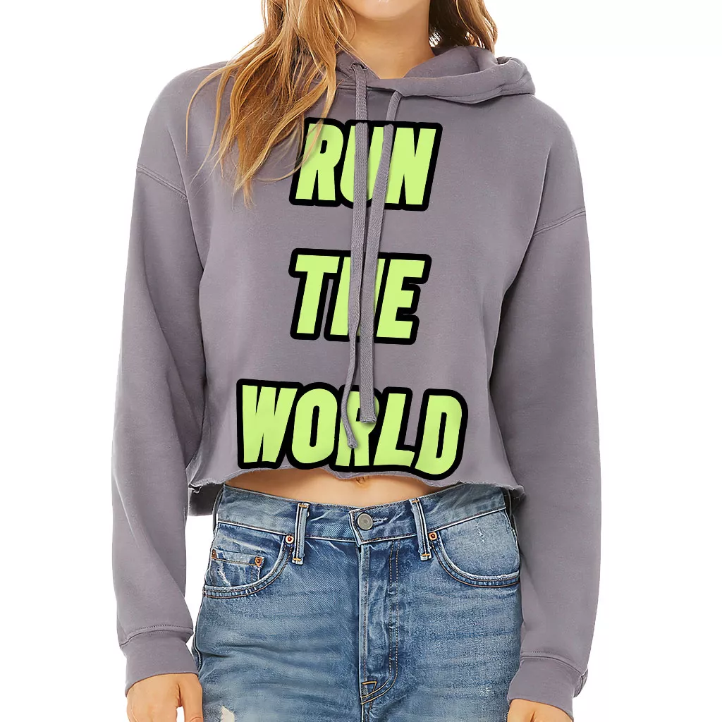 Run the World Women’s Cropped Hoodie – Best Quote Cropped Hoodie – Cool Graphic Hooded Sweatshirt