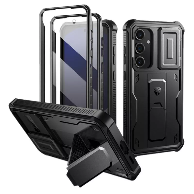 Safeguard your Samsung Galaxy S24 FE with a rugged case designed to handle every adventure. This case features a built-in slide camera cover, a robust screen protector, and a versatile kickstand. Engineered for durability, it provides military-grade shockproof protection, keeping your phone secure against drops, bumps, and scratches. With precise cutouts and wireless charging compatibility, this case combines practicality with premium defense.