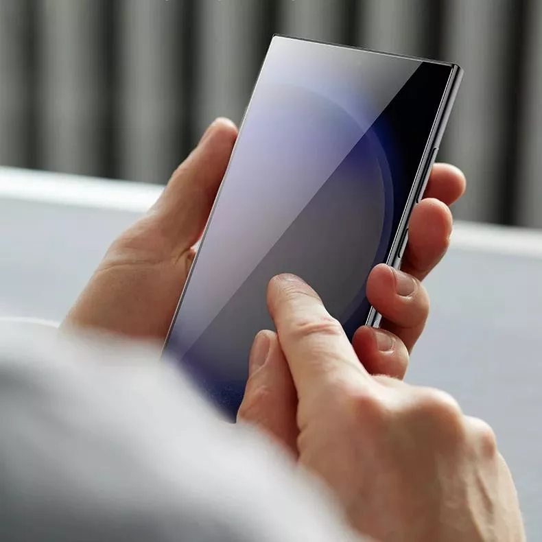 This privacy screen protector boasts a sleek and durable design, making it a must-have accessory for your Samsung device. Crafted from high-quality tempered glass, it combines strength and functionality. The anti-glare coating ensures comfortable viewing, even in bright environments, while the anti-fingerprint film keeps your screen smudge-free. Precision-cut edges and perfect compatibility mean it seamlessly integrates with your Samsung S24 Ultra or S24+.