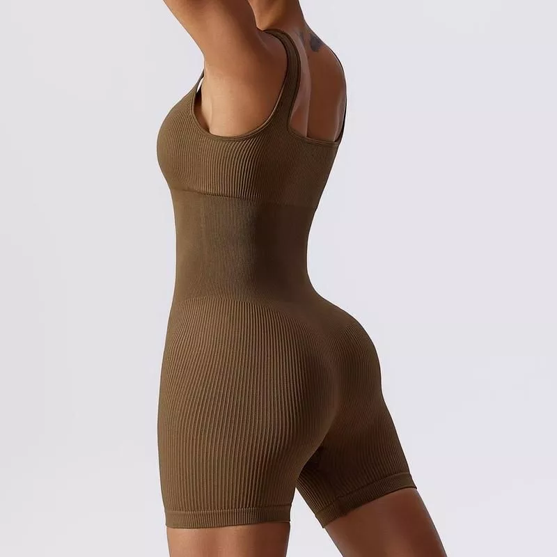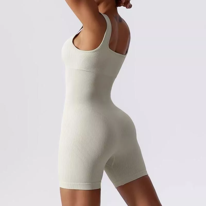 Our Seamless Yoga Romper is not just for yoga. It’s an excellent choice for various activities, including running, pilates, or even casual outings. The stylish ribbed design and integrated padded sports bra offer both support and a trendy look, making it a versatile addition to your wardrobe.