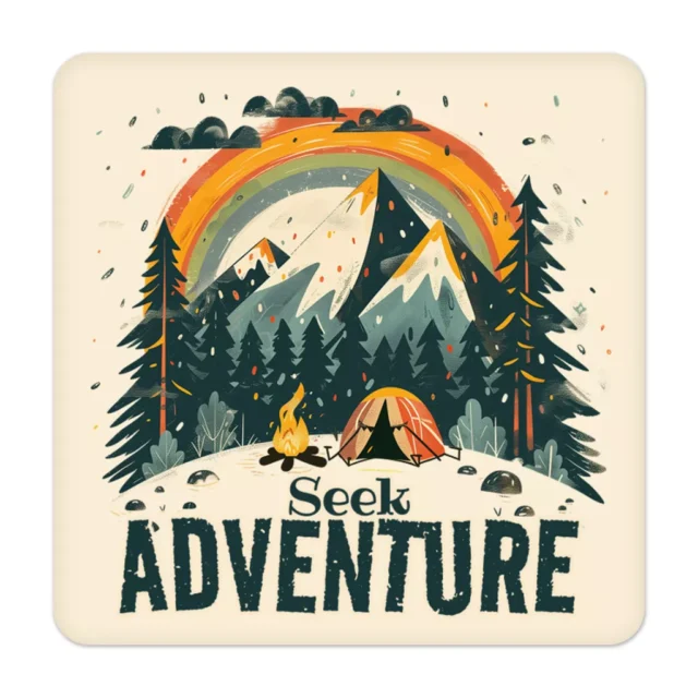 Seek Adventure Square Coaster 4-Piece Set – Travel Coasters for Drinks – Vacation Coffee Tea Mug Coasters
