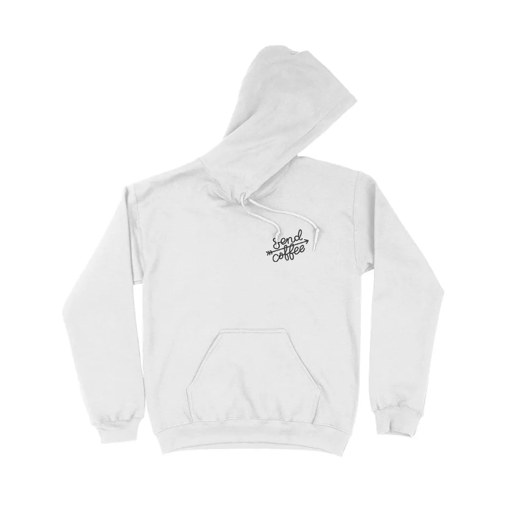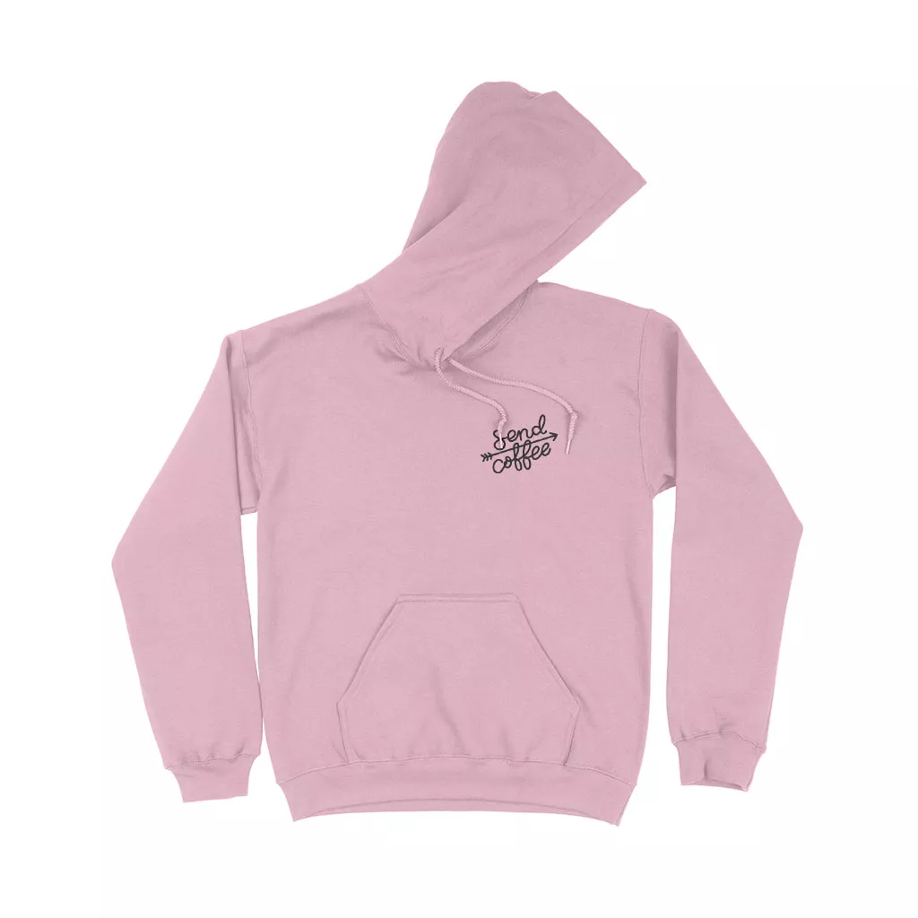 double-lined hood with matching drawstring, pouch pocket, and