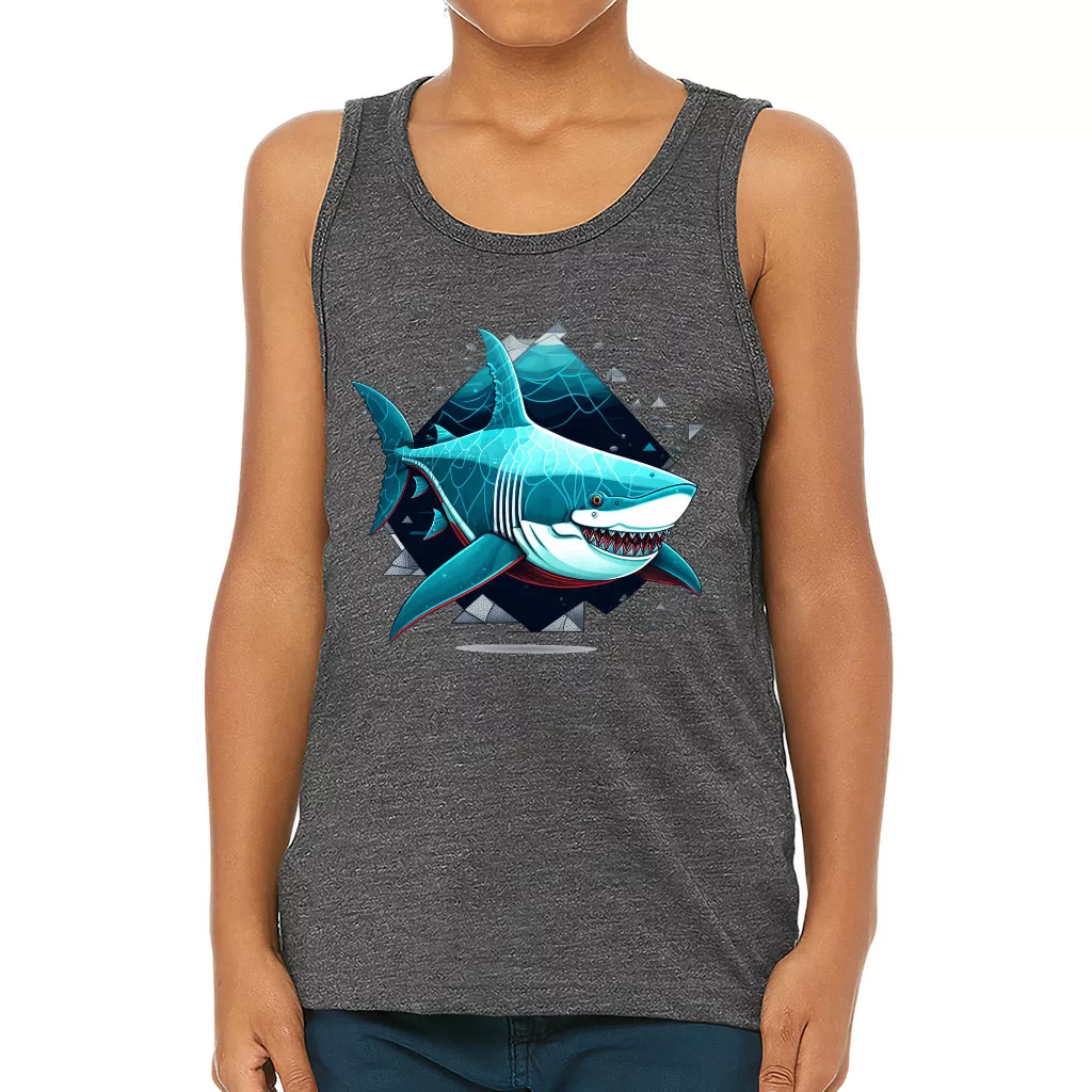Shark Print Kids’ Jersey Tank – Cool Art Sleeveless T-Shirt – Best Design Kids’ Tank Top