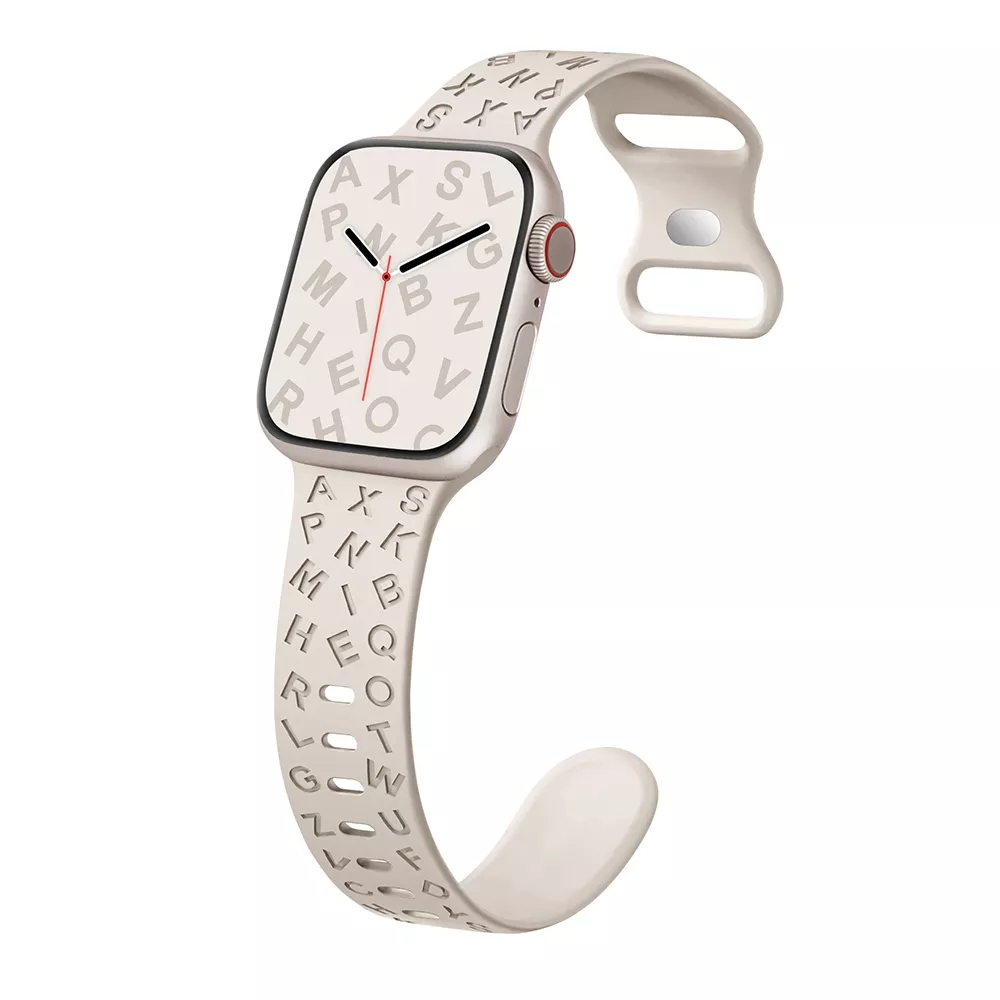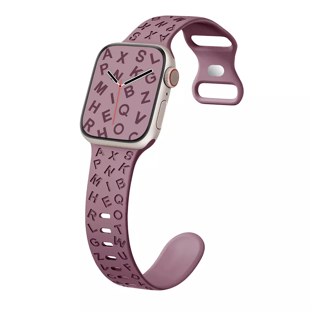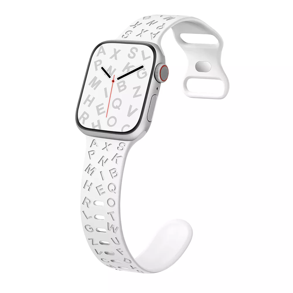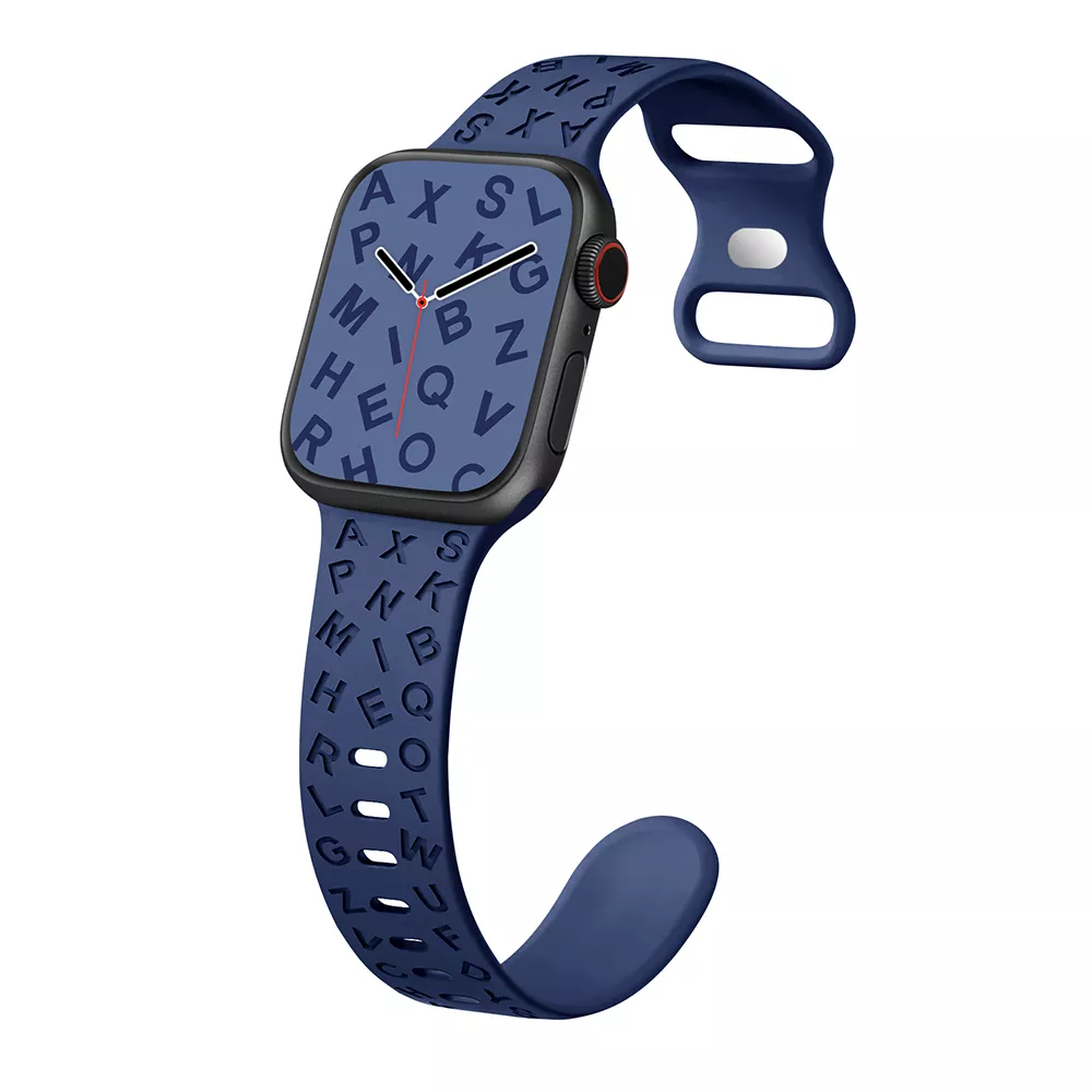 This strap is designed to bring out the best in your Apple Watch. The engraved letters add a distinctive flair that reflects your personality and style, turning your smartwatch into a fashionable accessory. Its premium silicone construction ensures durability and a soft, baby-skin feel, so you can wear it comfortably all day, no matter your activity level.