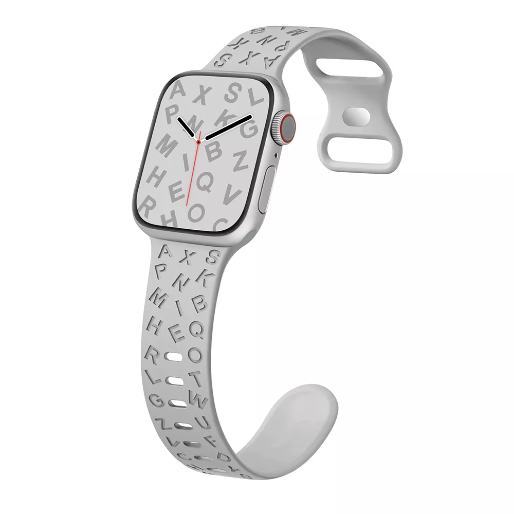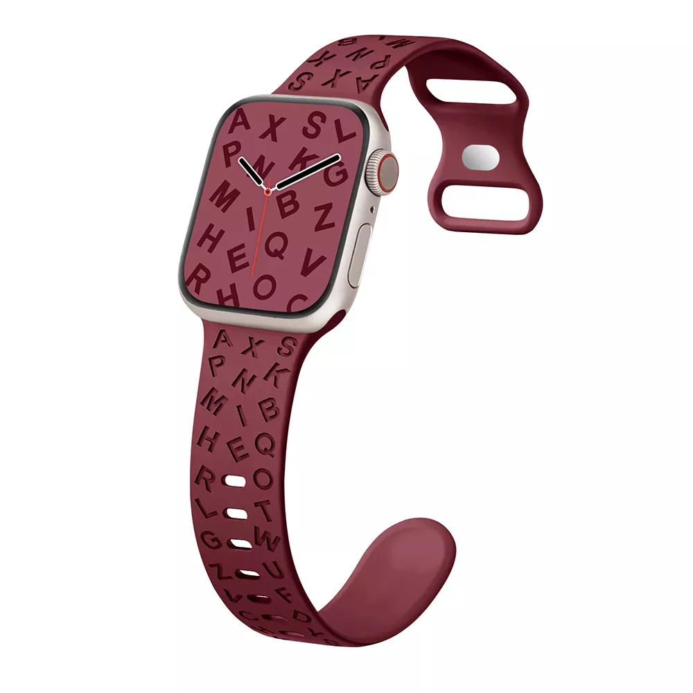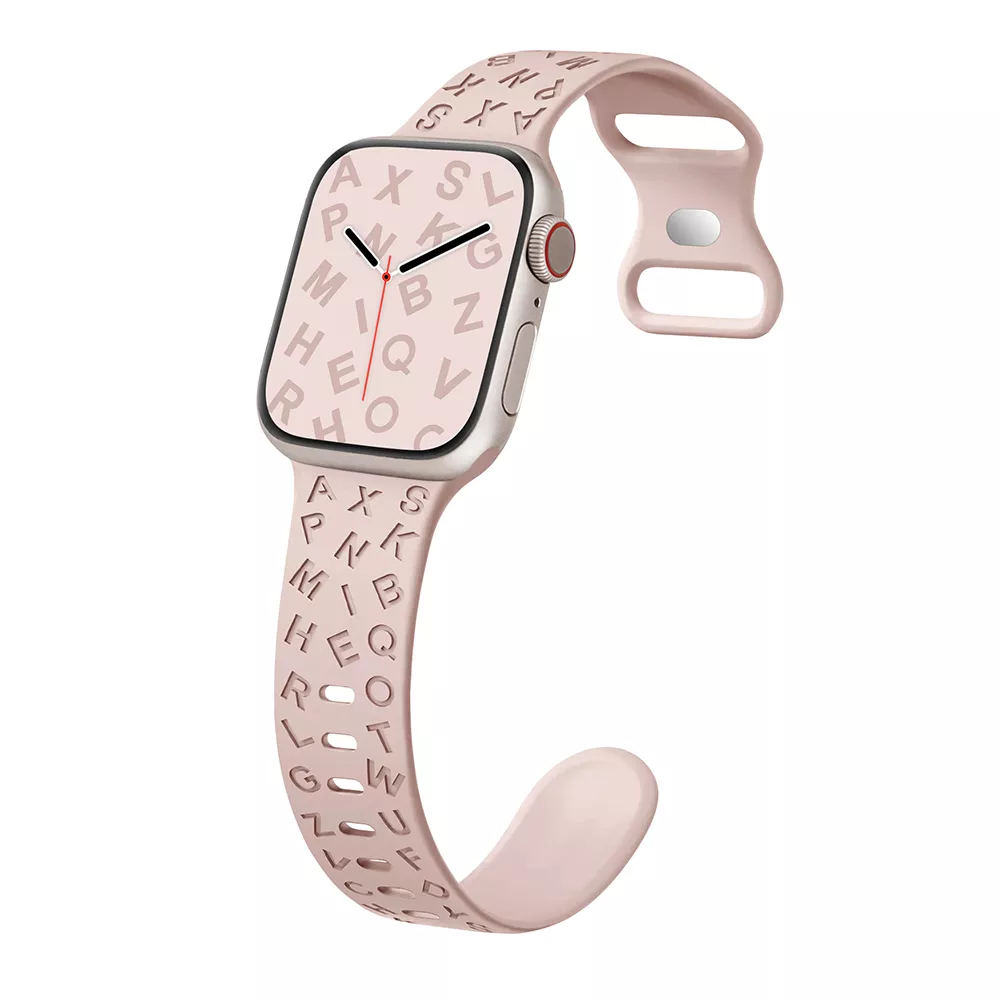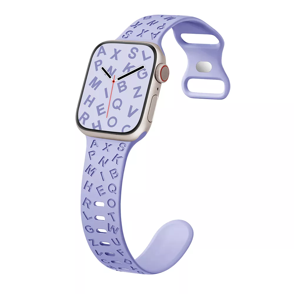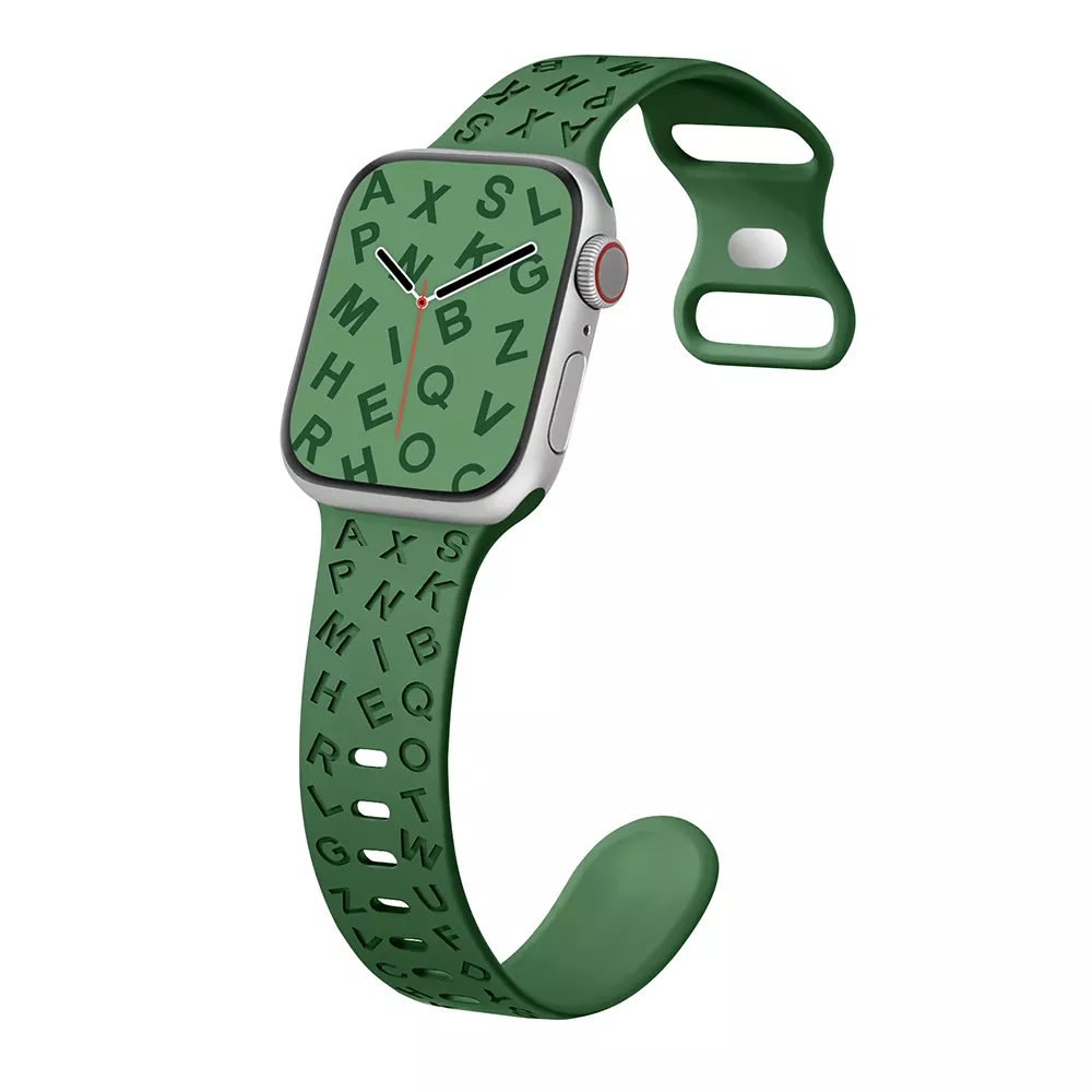 This strap is designed to bring out the best in your Apple Watch. The engraved letters add a distinctive flair that reflects your personality and style, turning your smartwatch into a fashionable accessory. Its premium silicone construction ensures durability and a soft, baby-skin feel, so you can wear it comfortably all day, no matter your activity level.