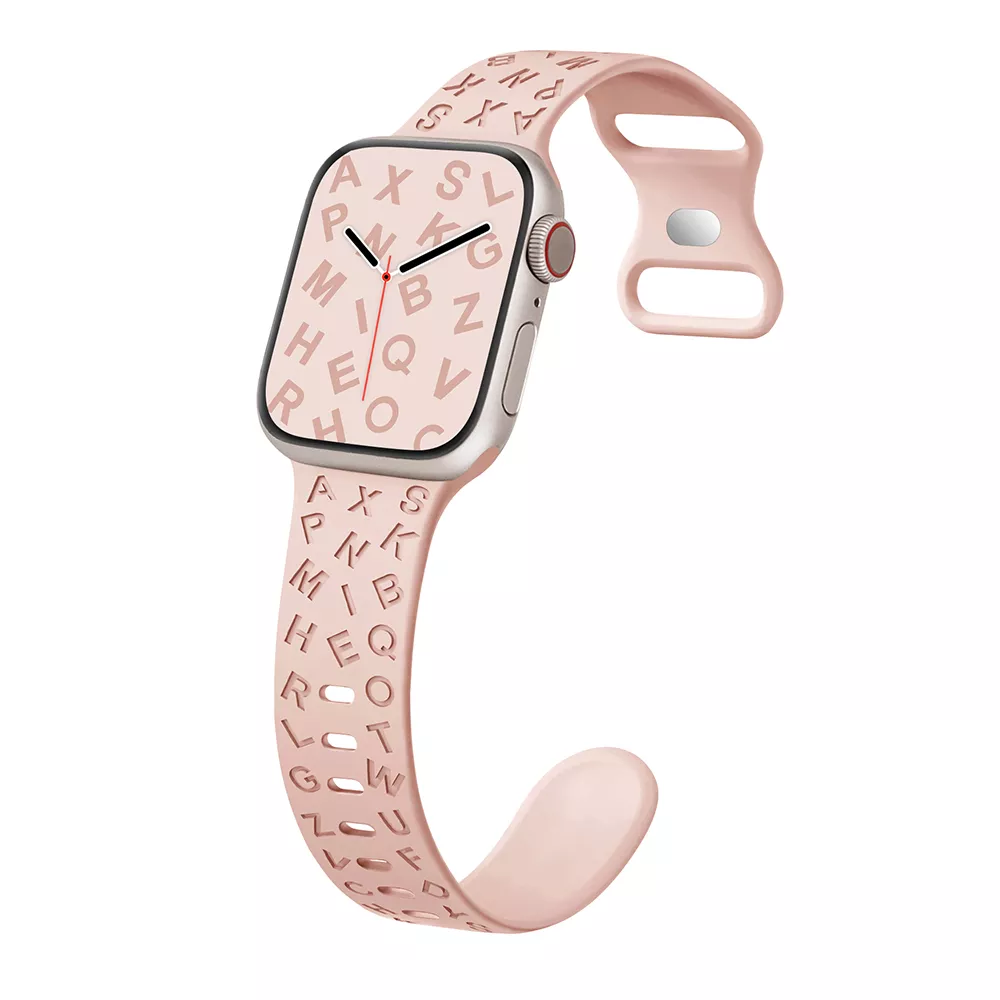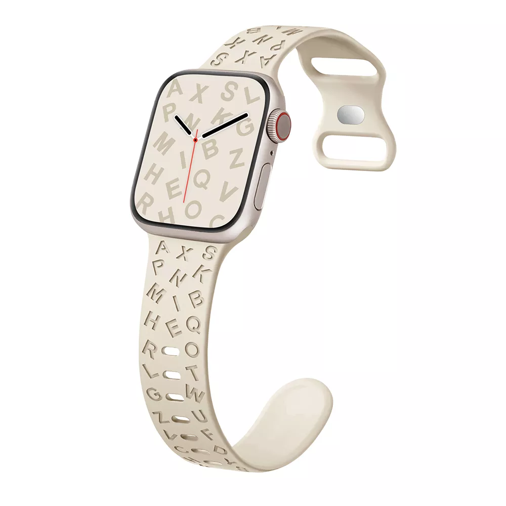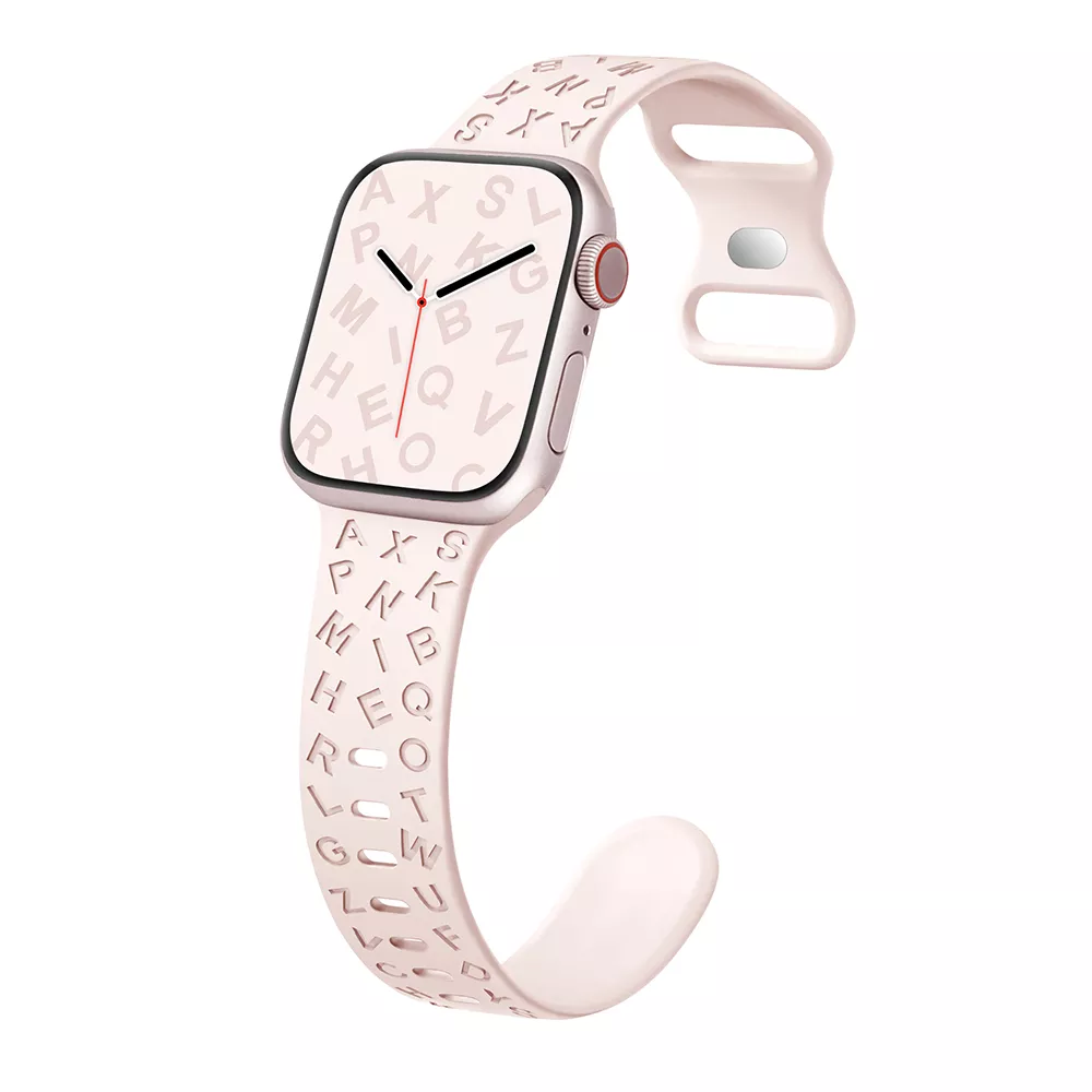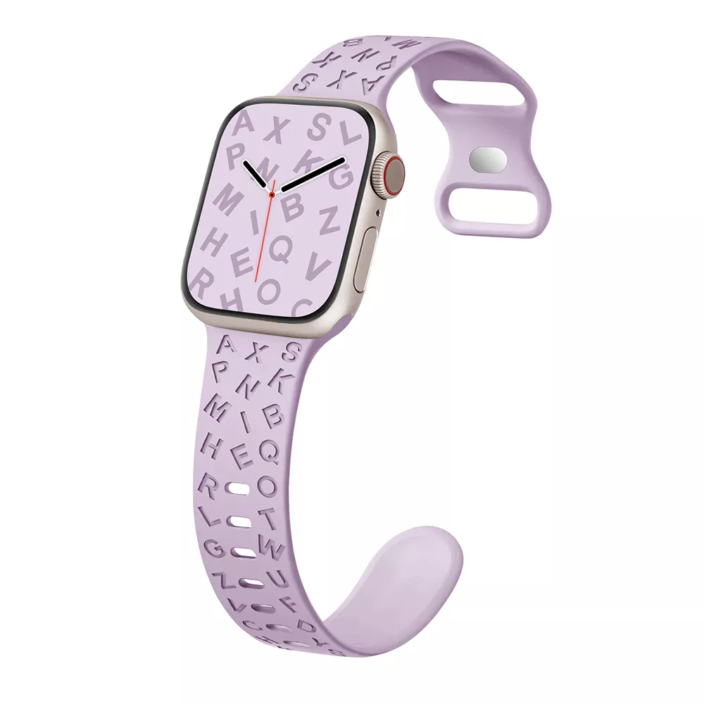 This strap is designed to bring out the best in your Apple Watch. The engraved letters add a distinctive flair that reflects your personality and style, turning your smartwatch into a fashionable accessory. Its premium silicone construction ensures durability and a soft, baby-skin feel, so you can wear it comfortably all day, no matter your activity level.