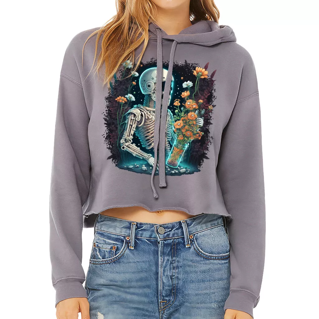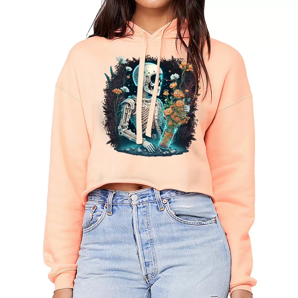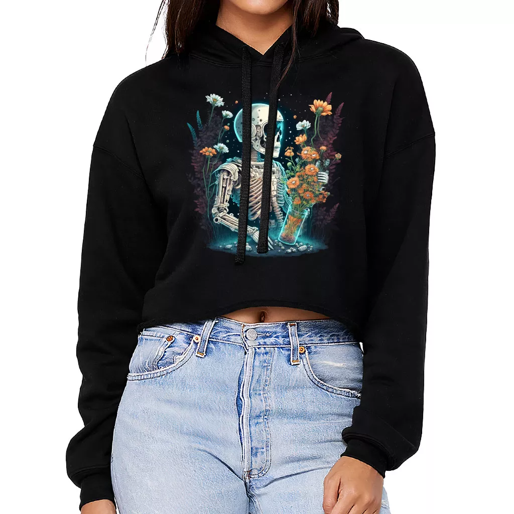 Skeleton Astronaut Women’s Cropped Hoodie – Flower Cropped Hoodie – Space Design Hooded Sweatshirt
