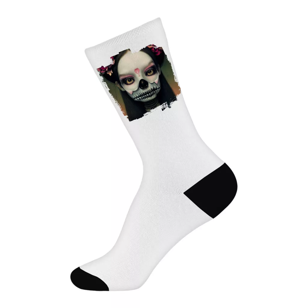 Skeleton Girl Socks – Gothic Novelty Socks – Artwork Crew Socks
