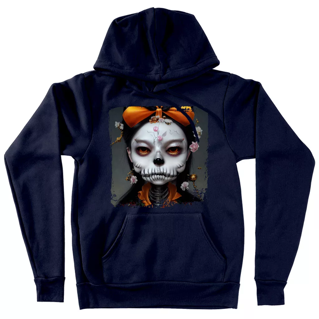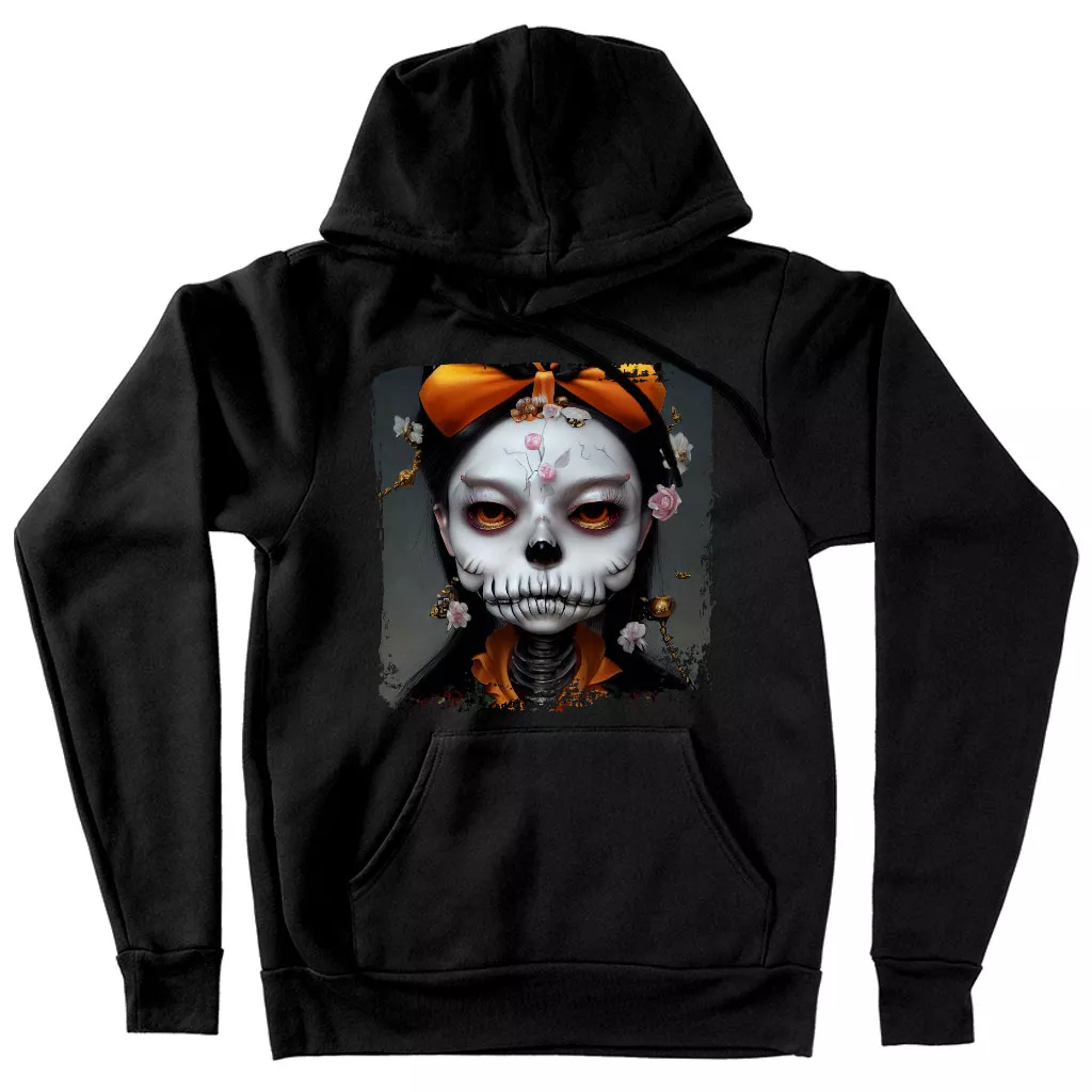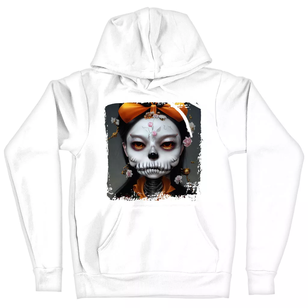 Skull Print Hooded Sweatshirt – Novelty Skeleton Hoodie – Creepy Girl Hoodie