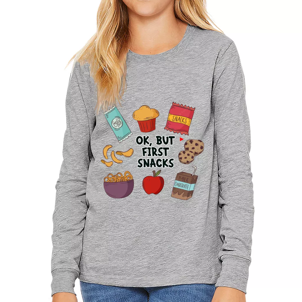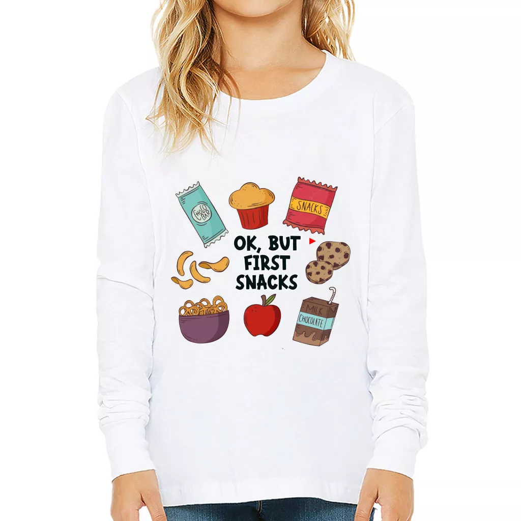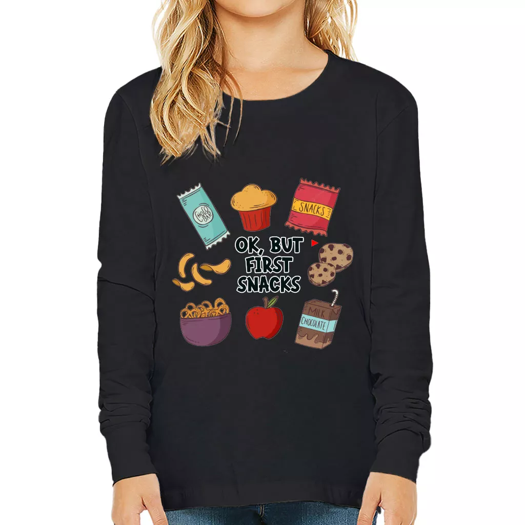 Snacks Kids’ Long Sleeve T-Shirt – Graphic T-Shirt – Kawaii Long Sleeve Tee