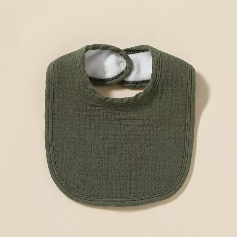 Crafted with multiple layers of thickened cotton, our bib offers superior absorbency without feeling heavy. The lightweight gauze material allows air to circulate freely, ensuring your baby stays cool and comfortable throughout the day. The soft edges are gentle on sensitive skin, while the solid color design makes it easy to match with any outfit — perfect for baby boys and girls alike.