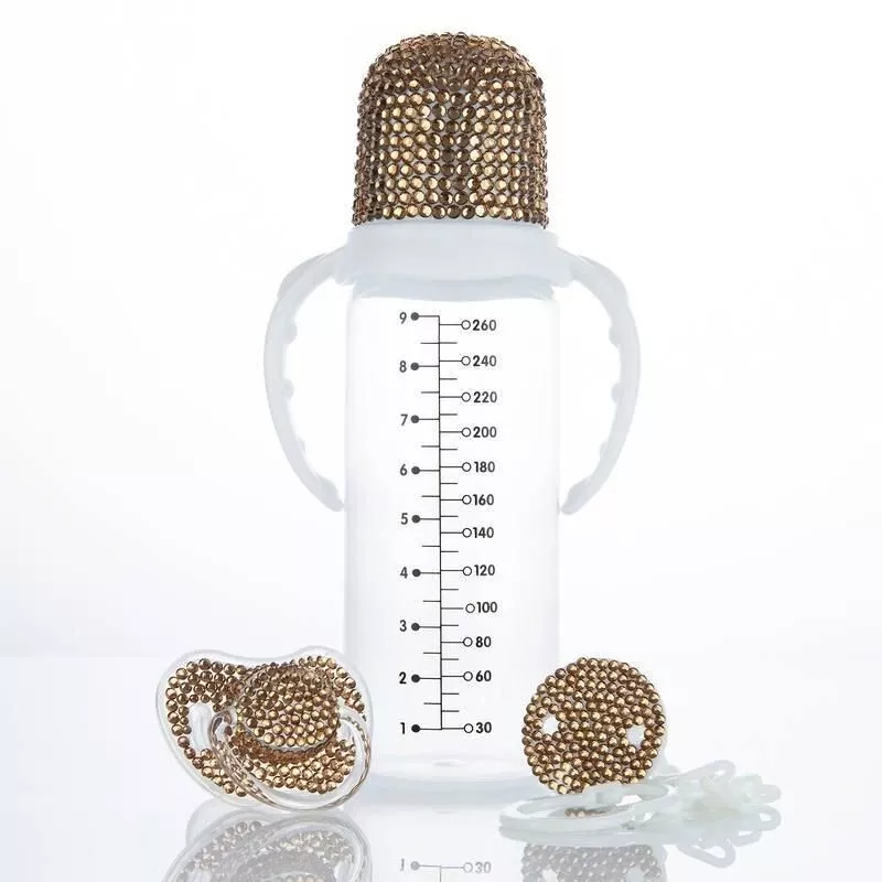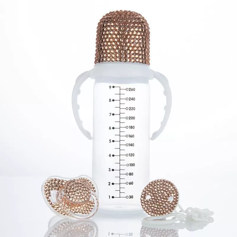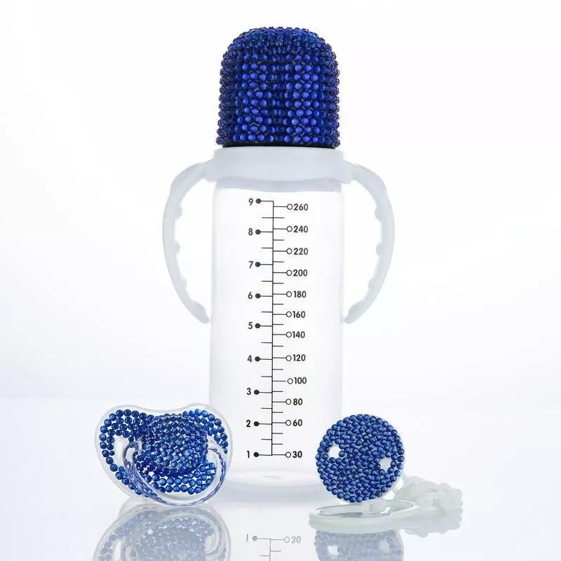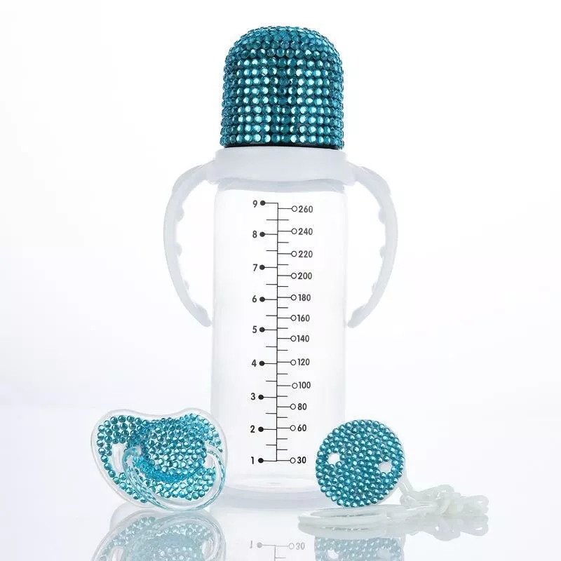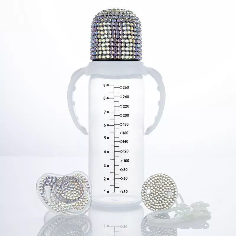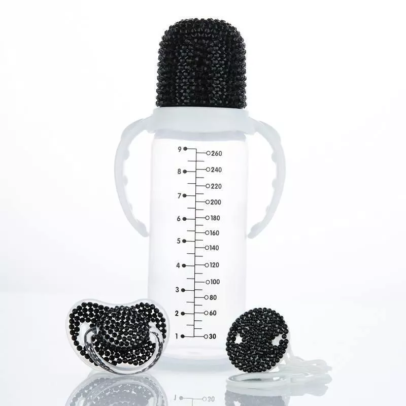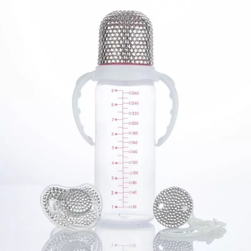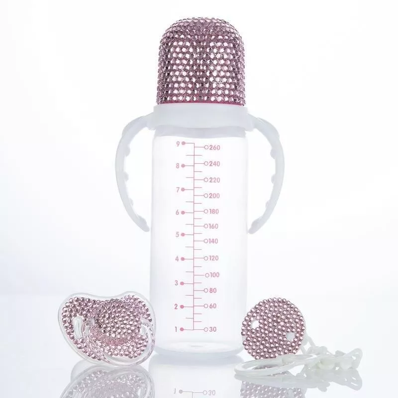 Introducing a captivating blend of elegance and functionality – our Sparkling Pink Rhinestone Pacifier & Baby Bottle Set. This set is a perfect amalgamation of style and safety, designed to bring a touch of glamour to your baby’s everyday life. Crafted with meticulous attention to detail, each piece in this set is a testament to luxury and comfort, making it an ideal choice for discerning parents.