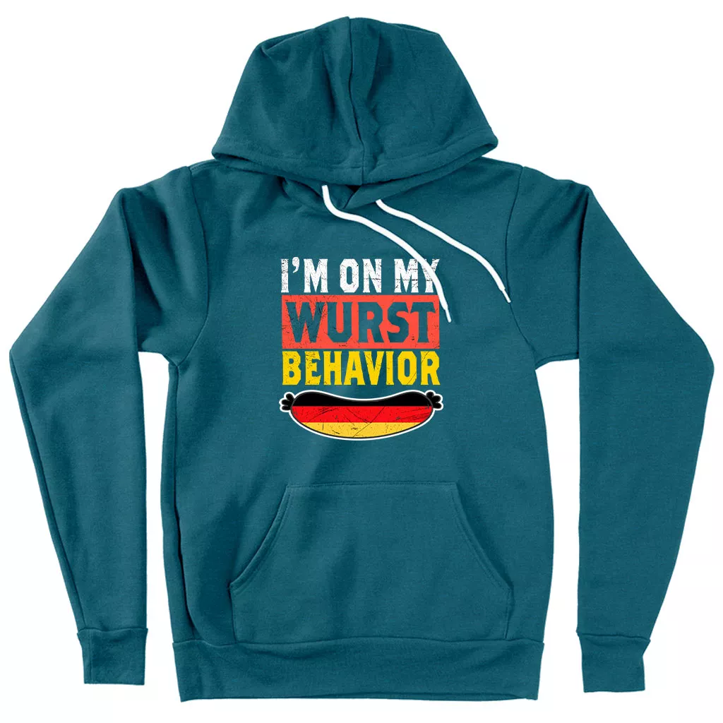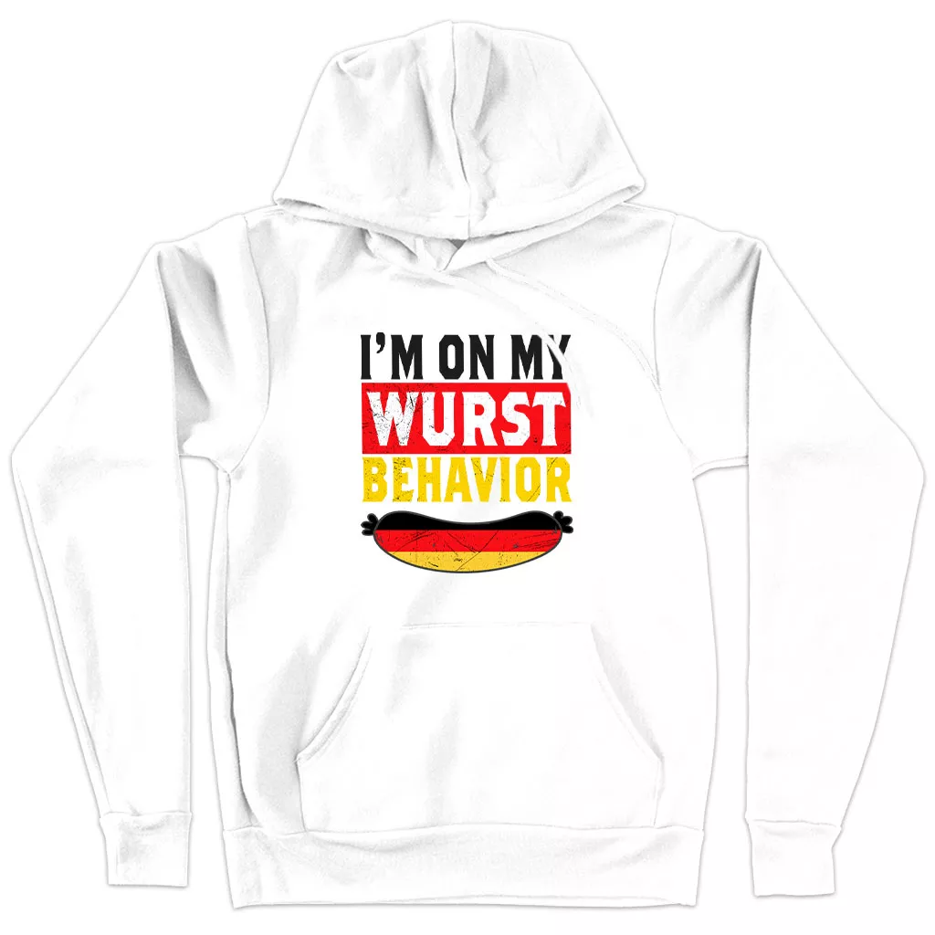 Sponge Fleece I’m on My Wurst Behavior Hoodie – Funny German Hoodies – German Heritage Hoodies