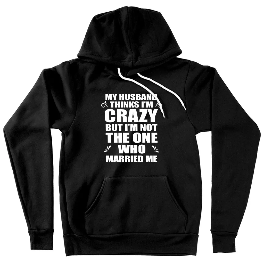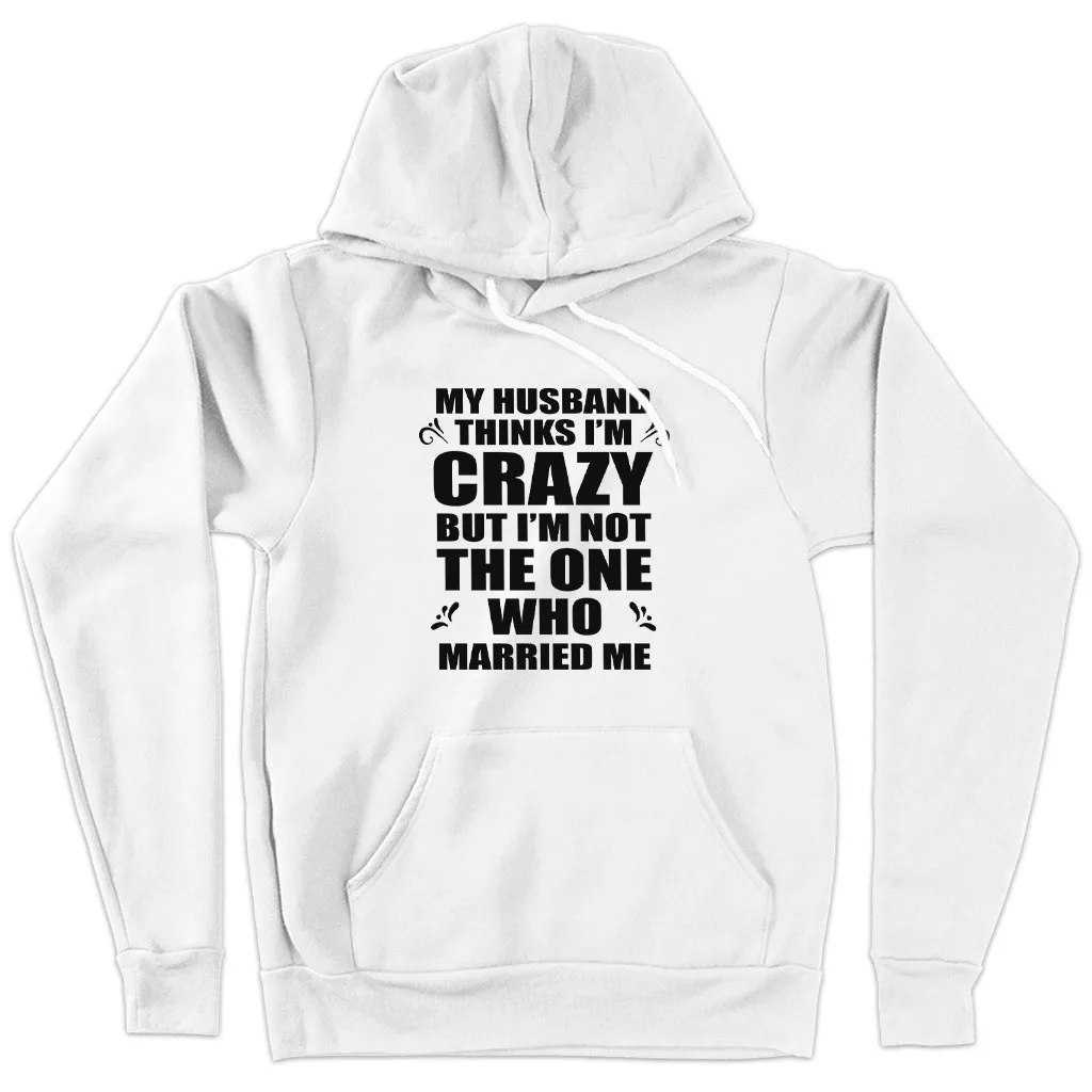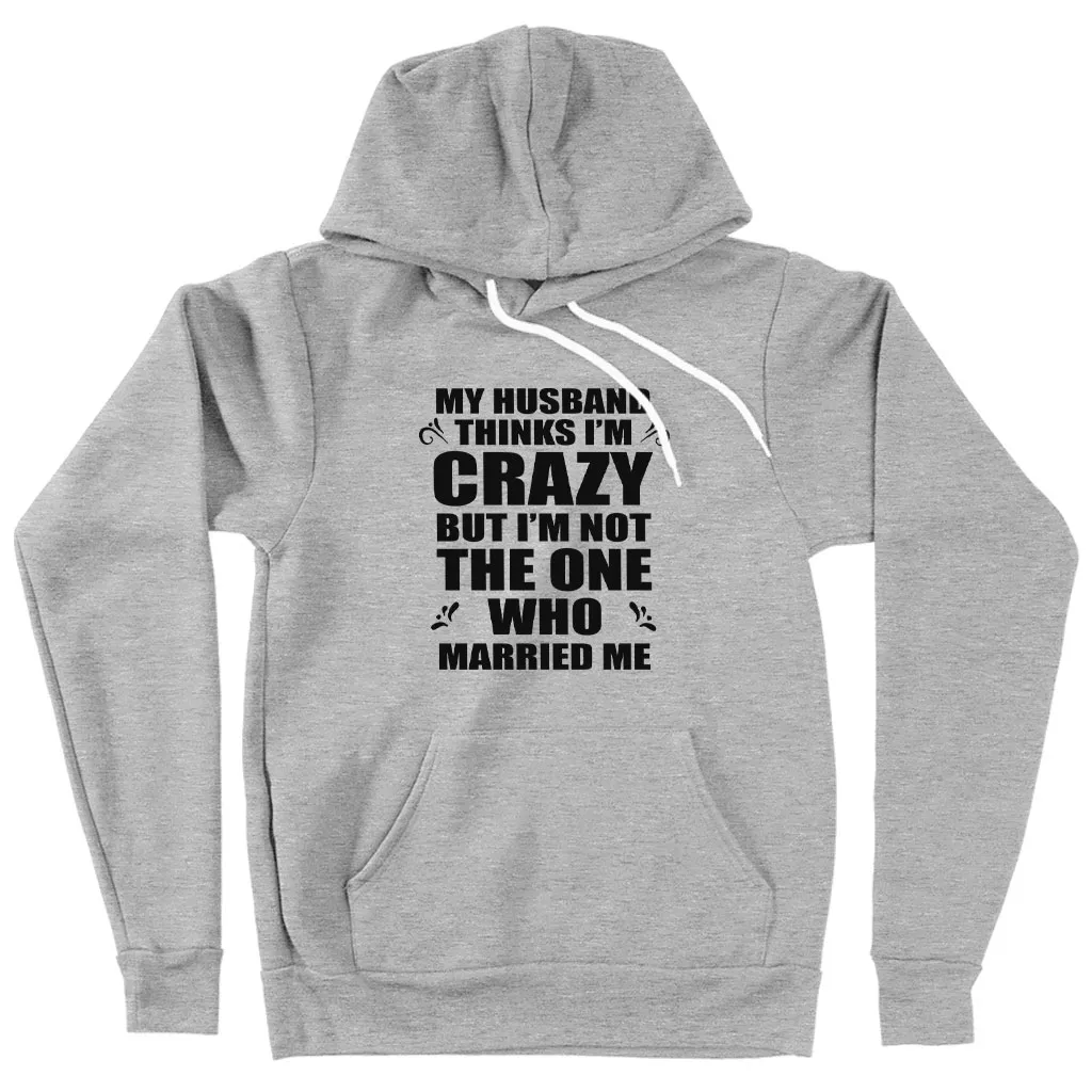 Sponge Fleece My Husband Thinks I’m Crazy Hoodie – Funny Husband Wife Hoodies