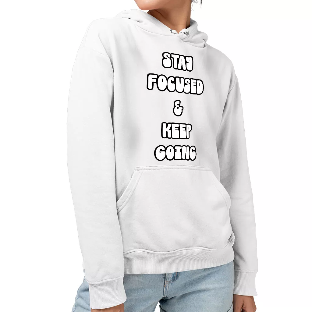 Stay Focused Sponge Fleece Hoodie – Keep Going Hoodie – Motivational Hooded Sweatshirt