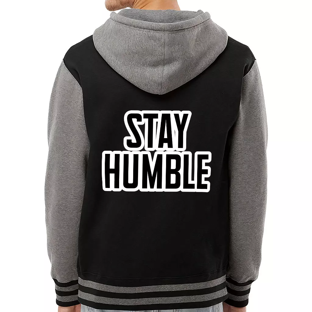 Stay Humble Varsity Hoodie – Cute Design Zip Hoodie – Quote Hooded Sweatshirt