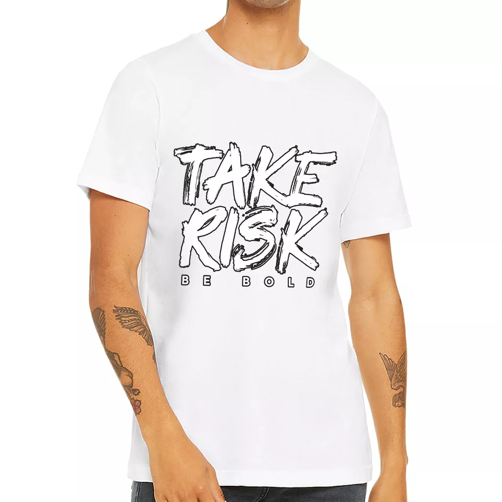 Take Risk Short Sleeve T-Shirt can be individually paired with jeans, sweatpants, leggings, skinny pants, cargo pants, beach shorts, or denim shorts, also work great under jacket or coats.