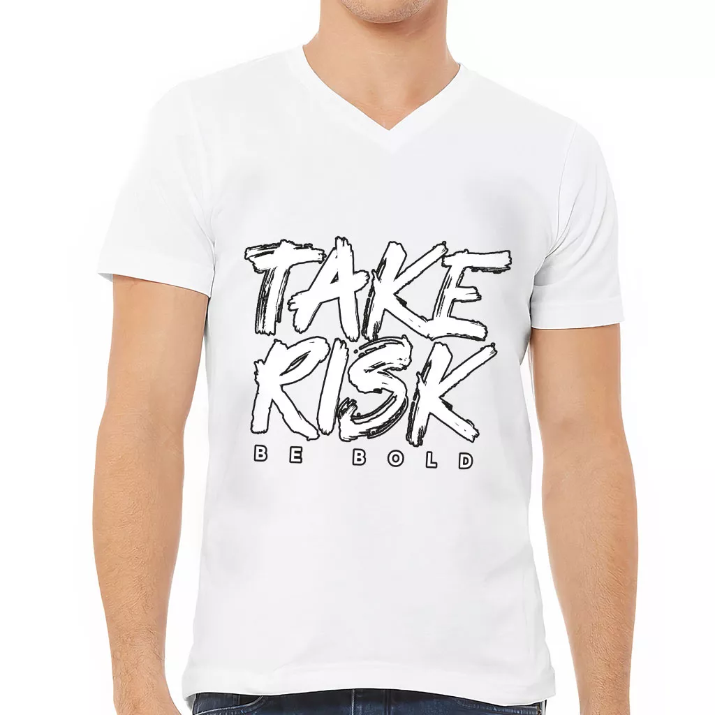 Take Risk V-Neck T-Shirt – Funny T-Shirt – Themed V-Neck Tee