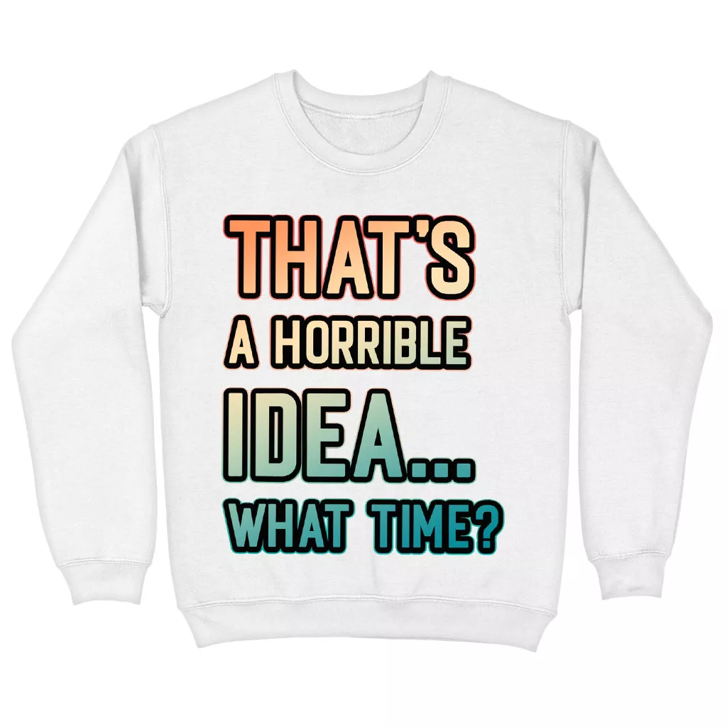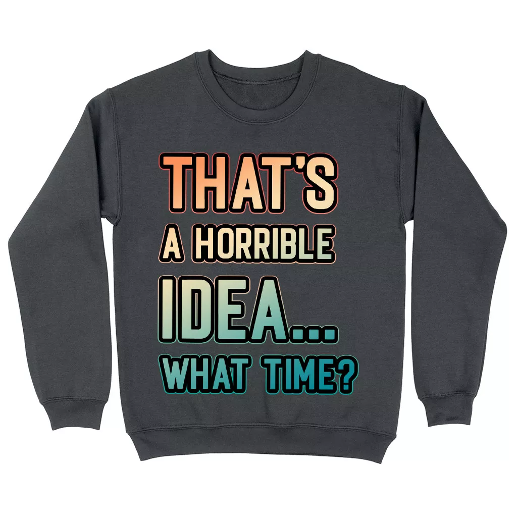 That’s a Horrible Idea What Time Sweatshirt – Printed Crewneck Sweatshirt – Funny Quote Sweatshirt