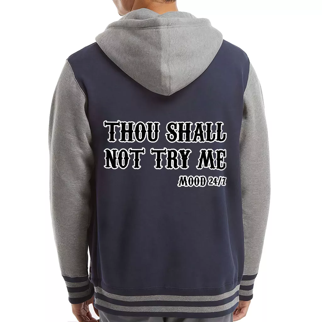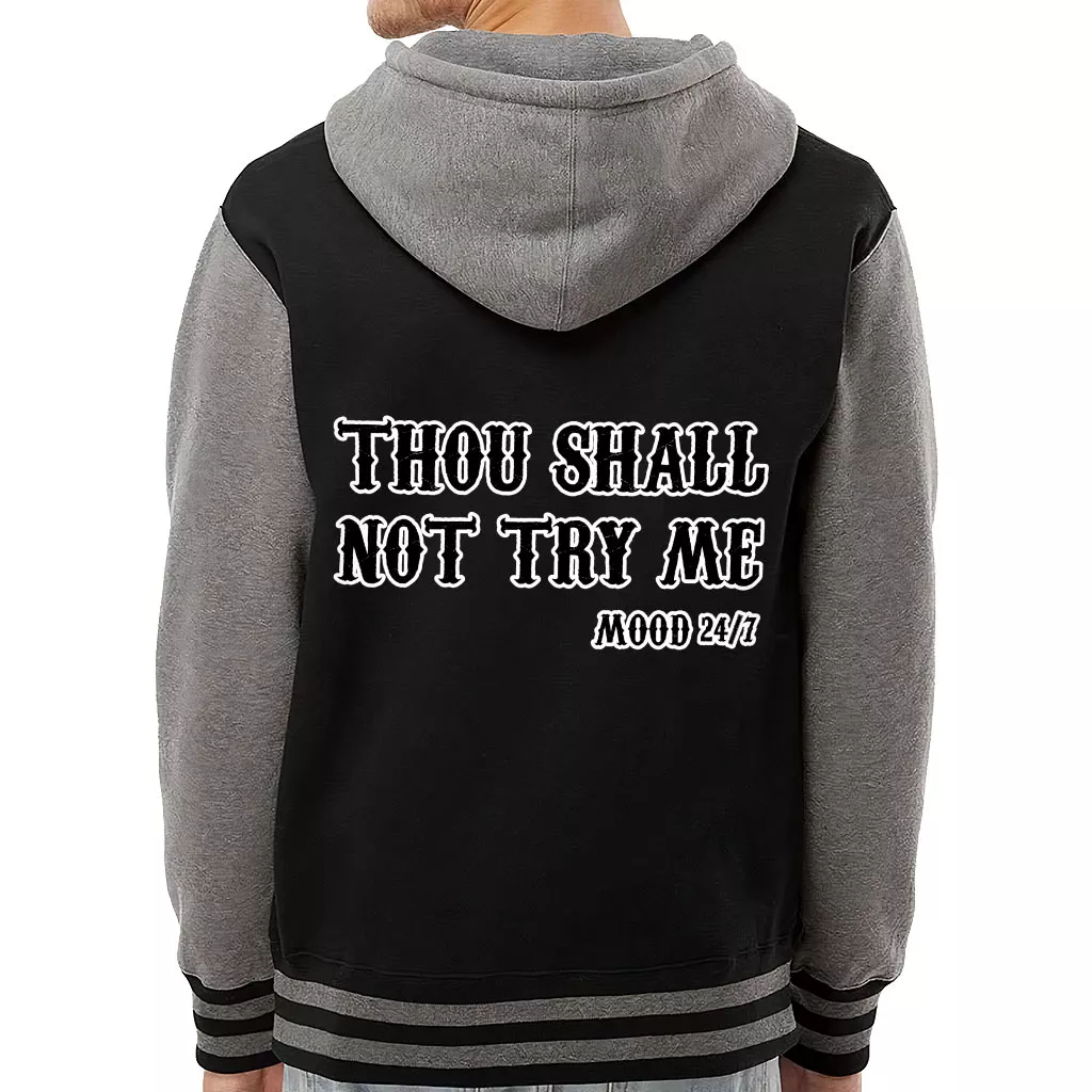 Thou Shall Not Varsity Hoodie – Cool Zip Hoodie – Printed Hooded Sweatshirt