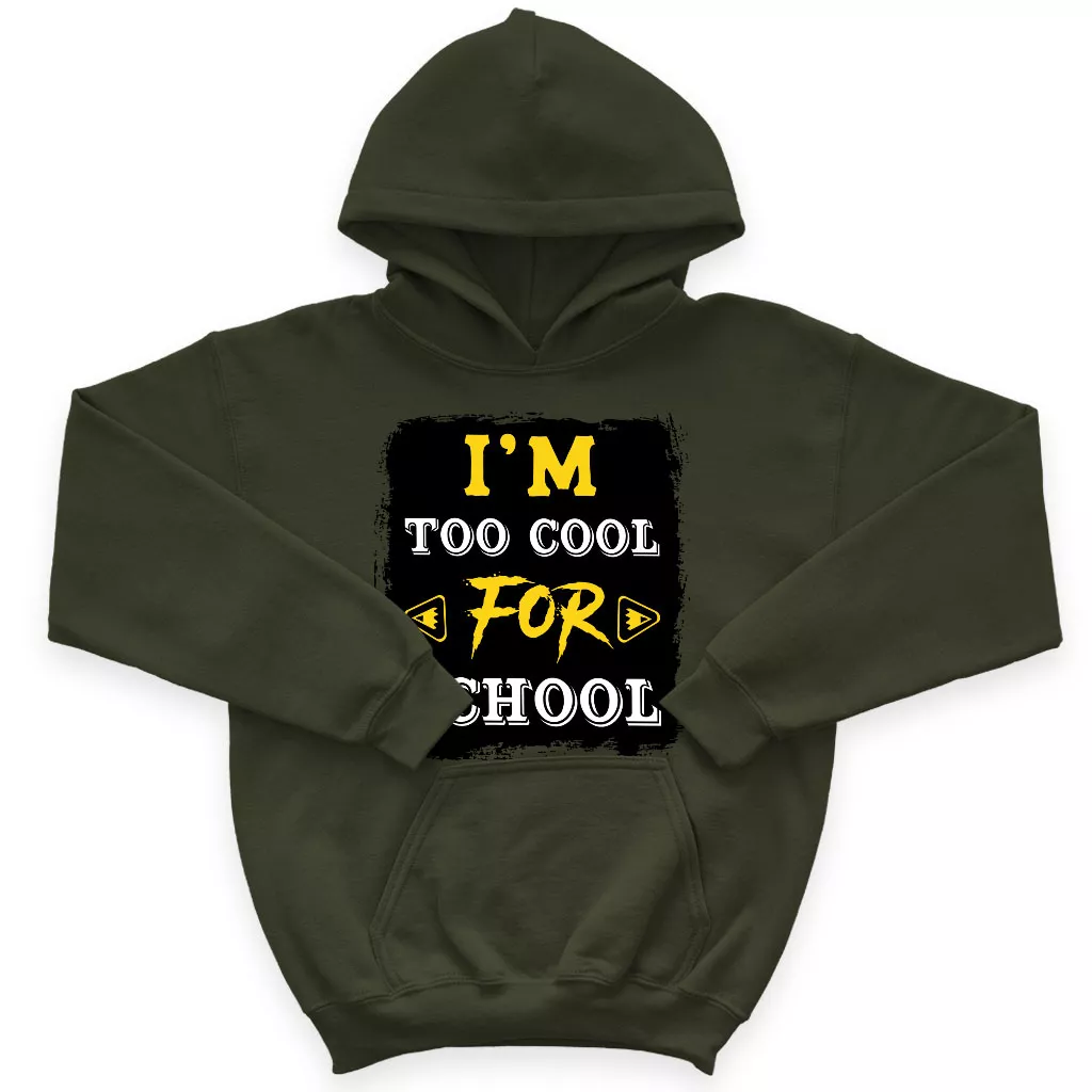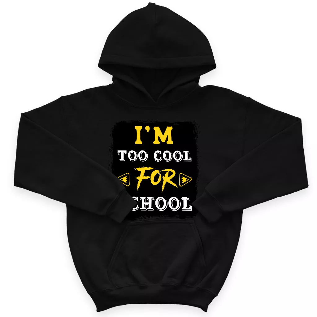 Too Cool for School Kids’ Sponge Fleece Hoodie – Funny Saying Kids’ Hoodie – Cool Design Hoodie for Kids