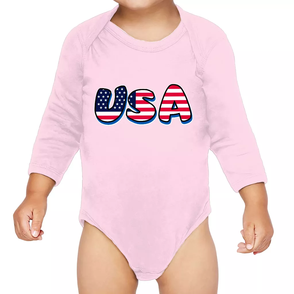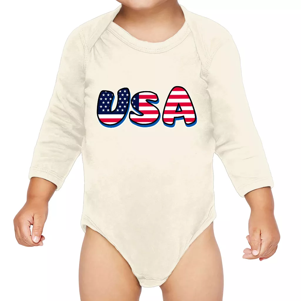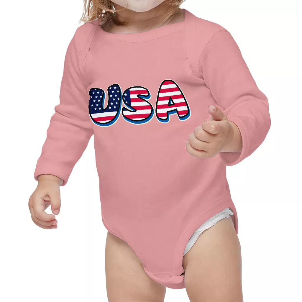Usa Printed Baby Long Sleeve Onesie – American Flag Baby Long Sleeve Bodysuit – Patriotic Baby One-Piece