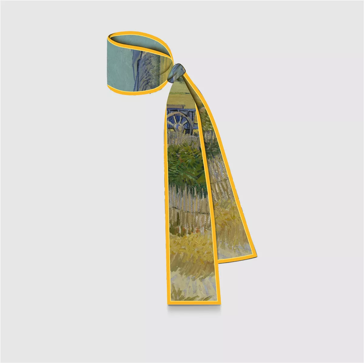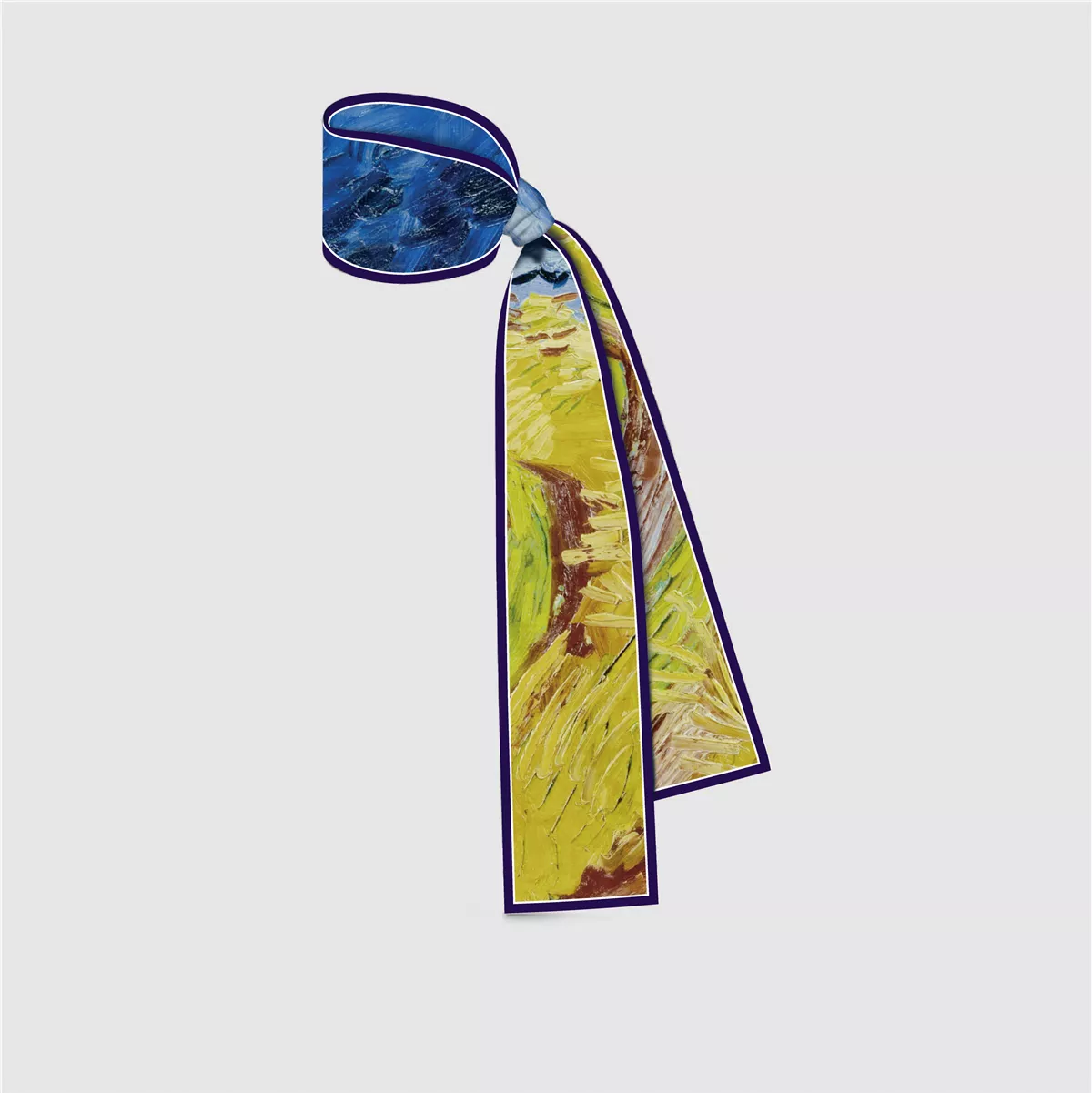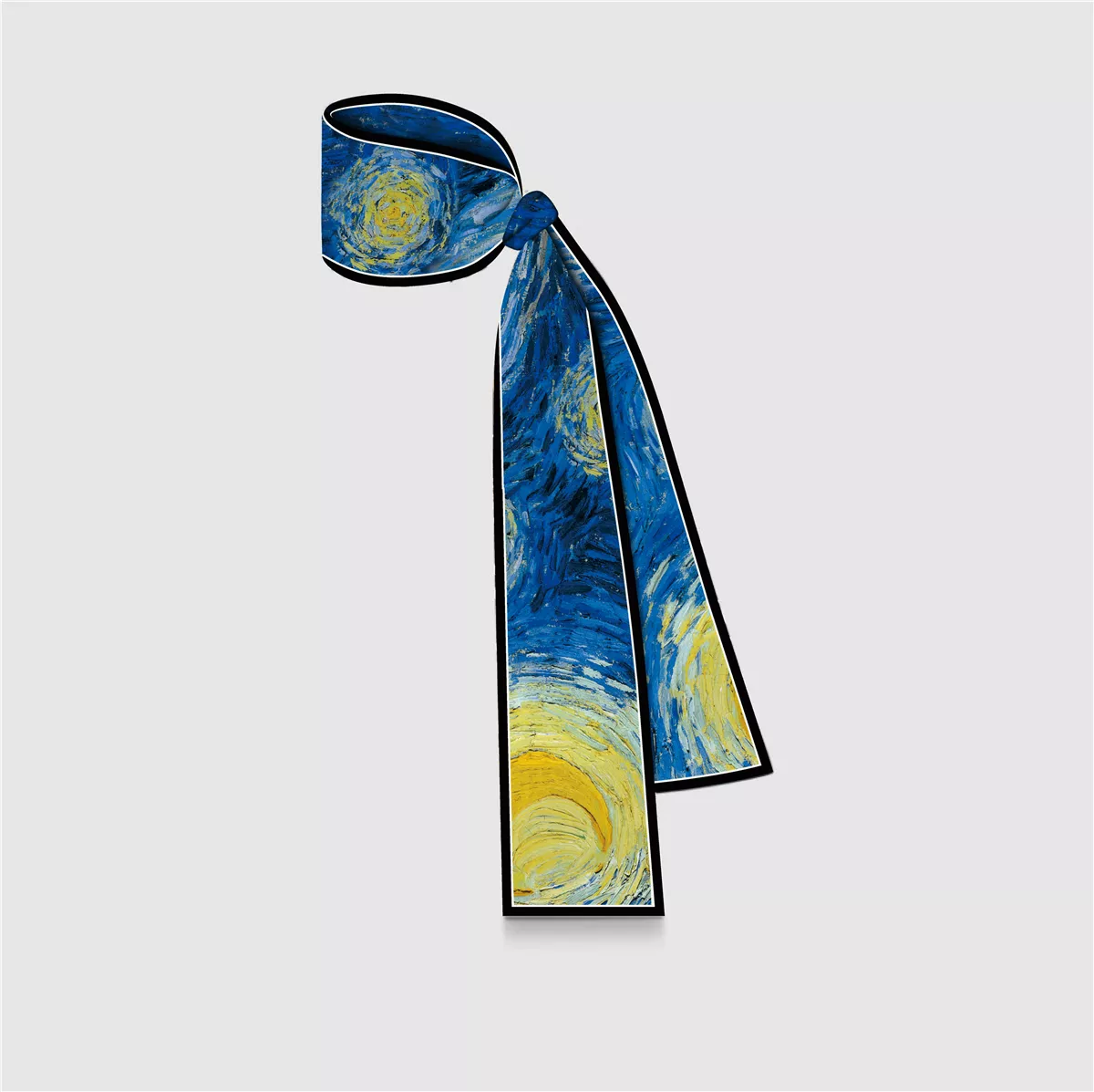 Wrap yourself in timeless artistry with this Van Gogh-inspired silk skinny scarf — a perfect blend of classic charm and modern style. Crafted with care using the delicate tatting weaving technique, this scarf adds a touch of sophistication to any outfit. Its slender design makes it an effortlessly chic accessory for your neck, hair, or handbag. Whether you’re heading to brunch, work, or a night out, this scarf brings a graceful finish that catches the eye and completes your look with artful flair.