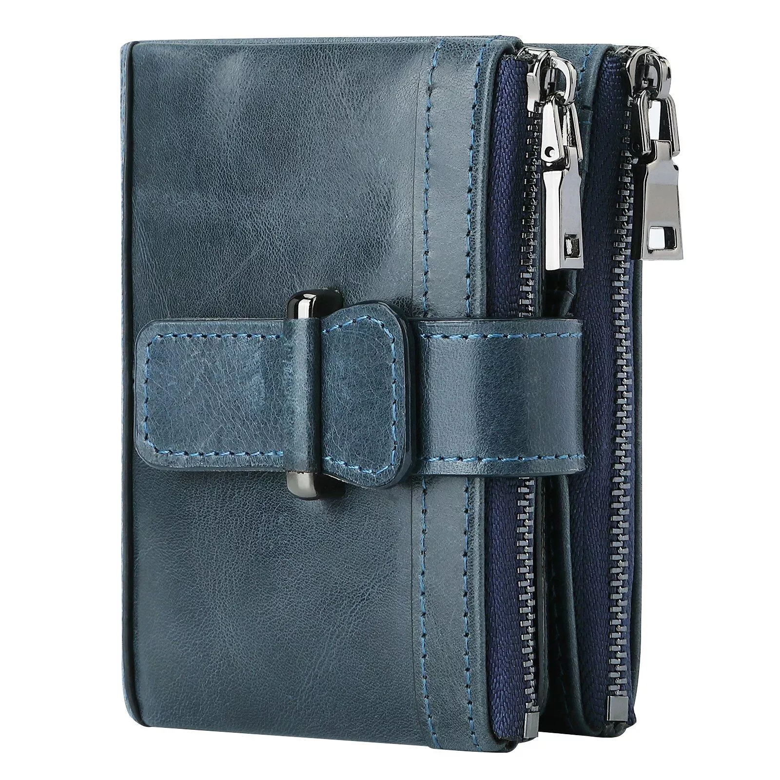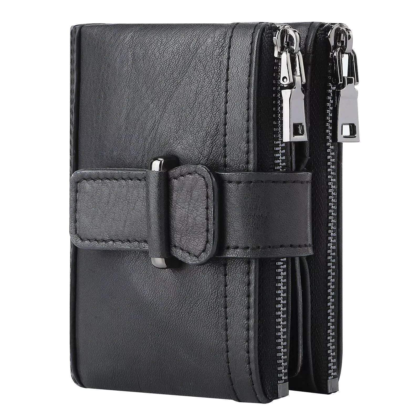 Vintage Cow Leather Men’s Wallet with Zipper and Multiple Compartments