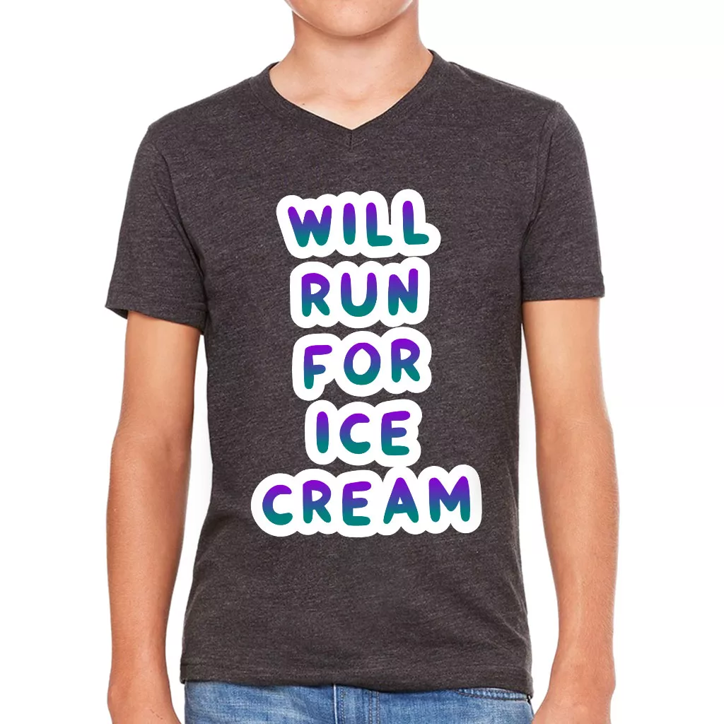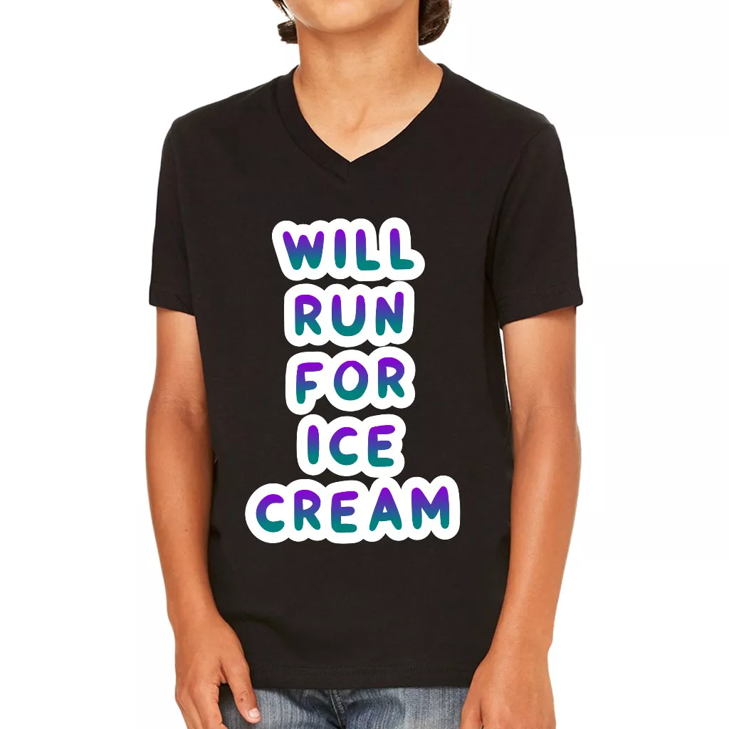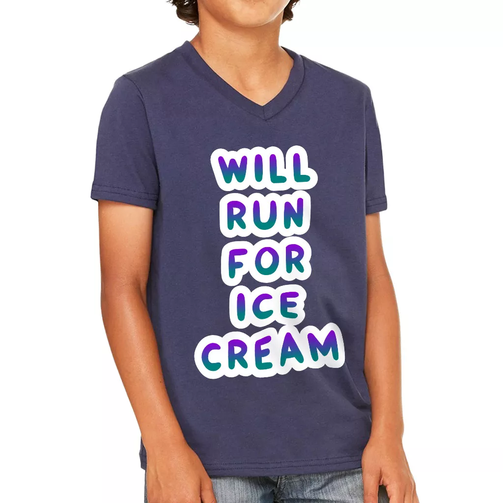 Will Run for Ice Cream Kids’ V-Neck T-Shirt – Funny T-Shirt – Cool V-Neck Tee