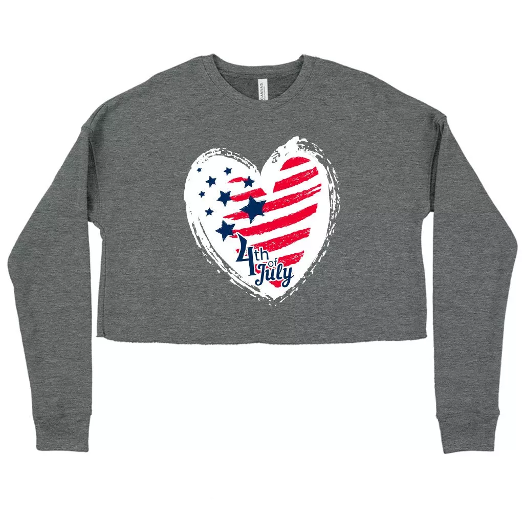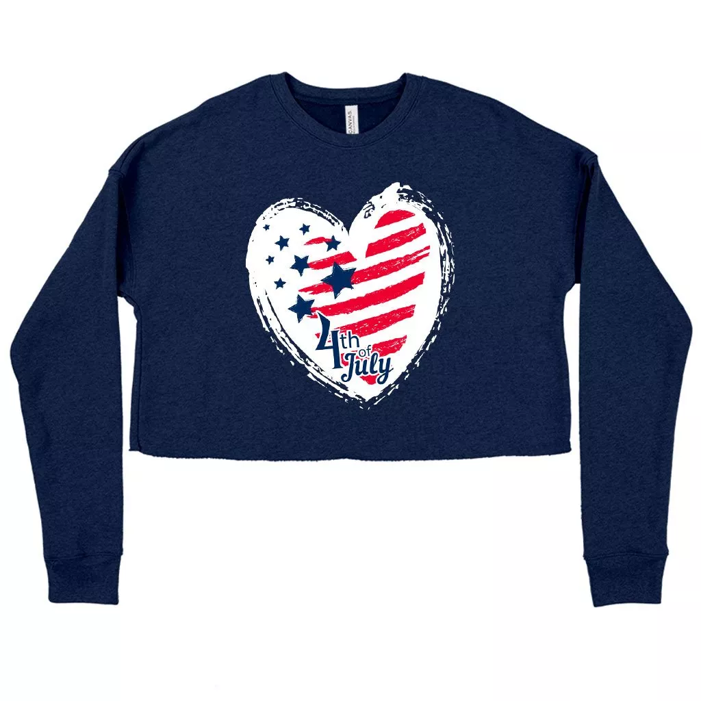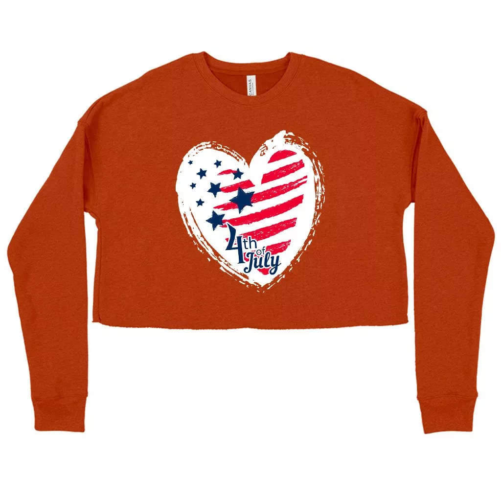 Women’s Cropped Fleece 4th of July Sweatshirt – USA Flag Sweatshirt – Independence Day Sweatshirts for Women