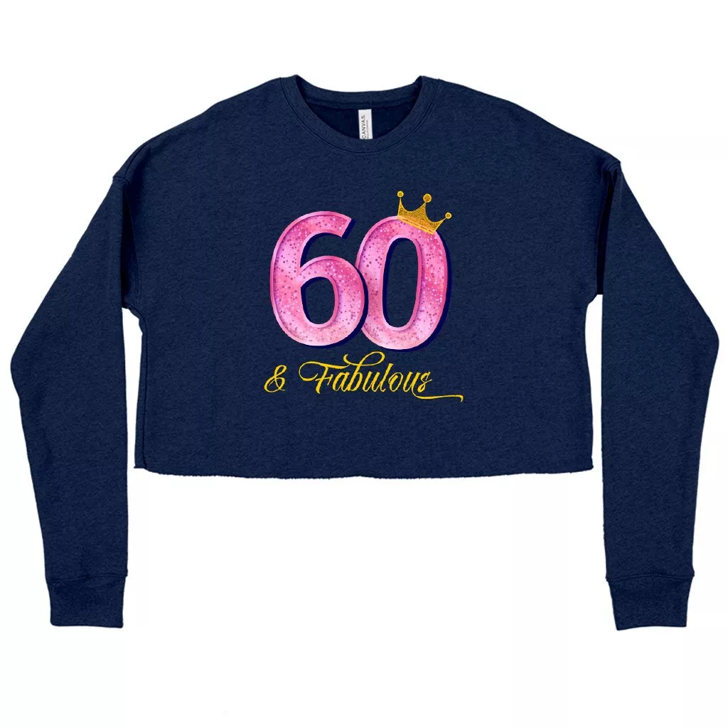 Women’s Cropped Fleece 60 & Fabulous Sweatshirt – 60th Birthday Ladies’ Sweatshirts – Sweatshirts for 60 Year Old Birthday