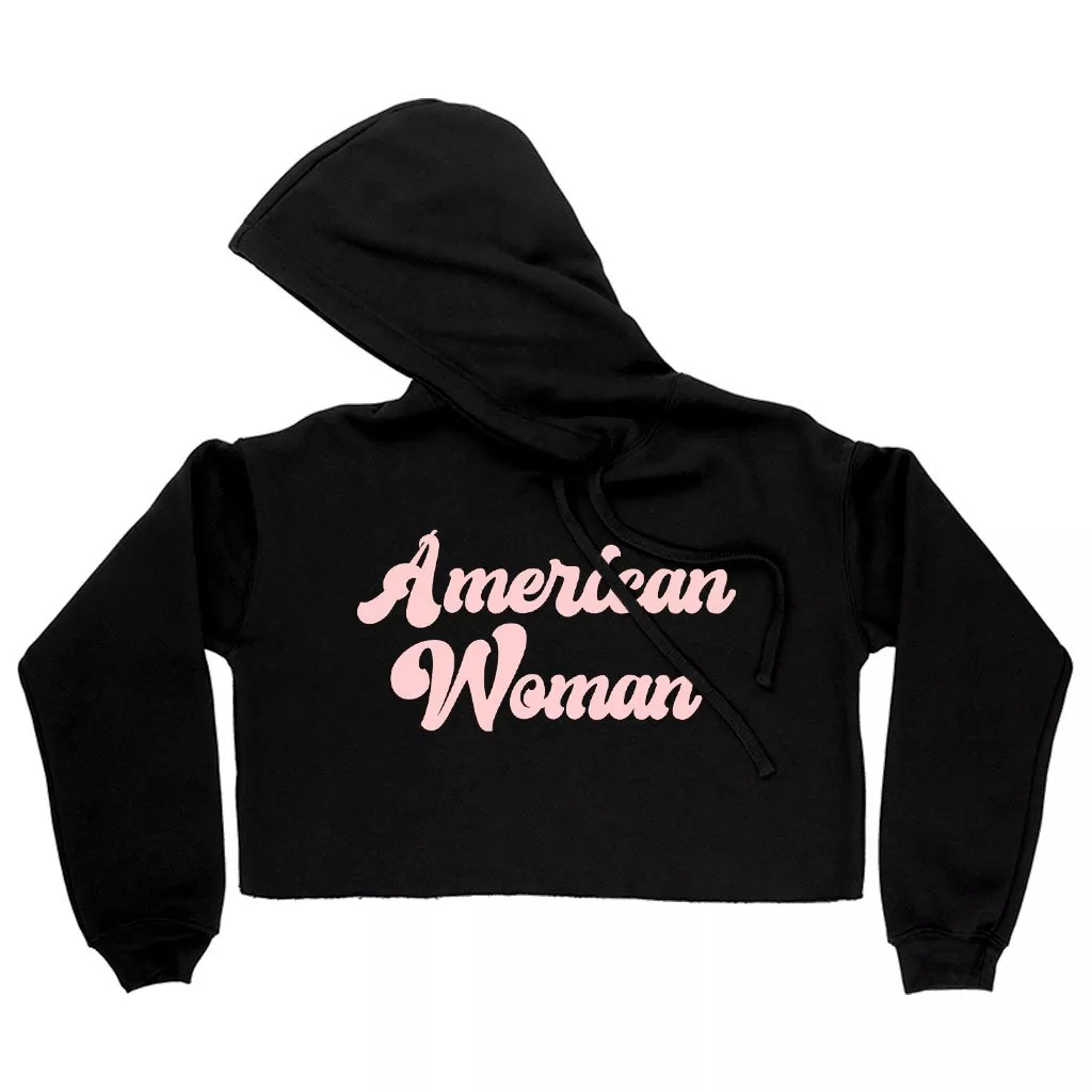 Women’s Cropped Fleece American Woman Hoodie – Patriotic Hoodies for Women