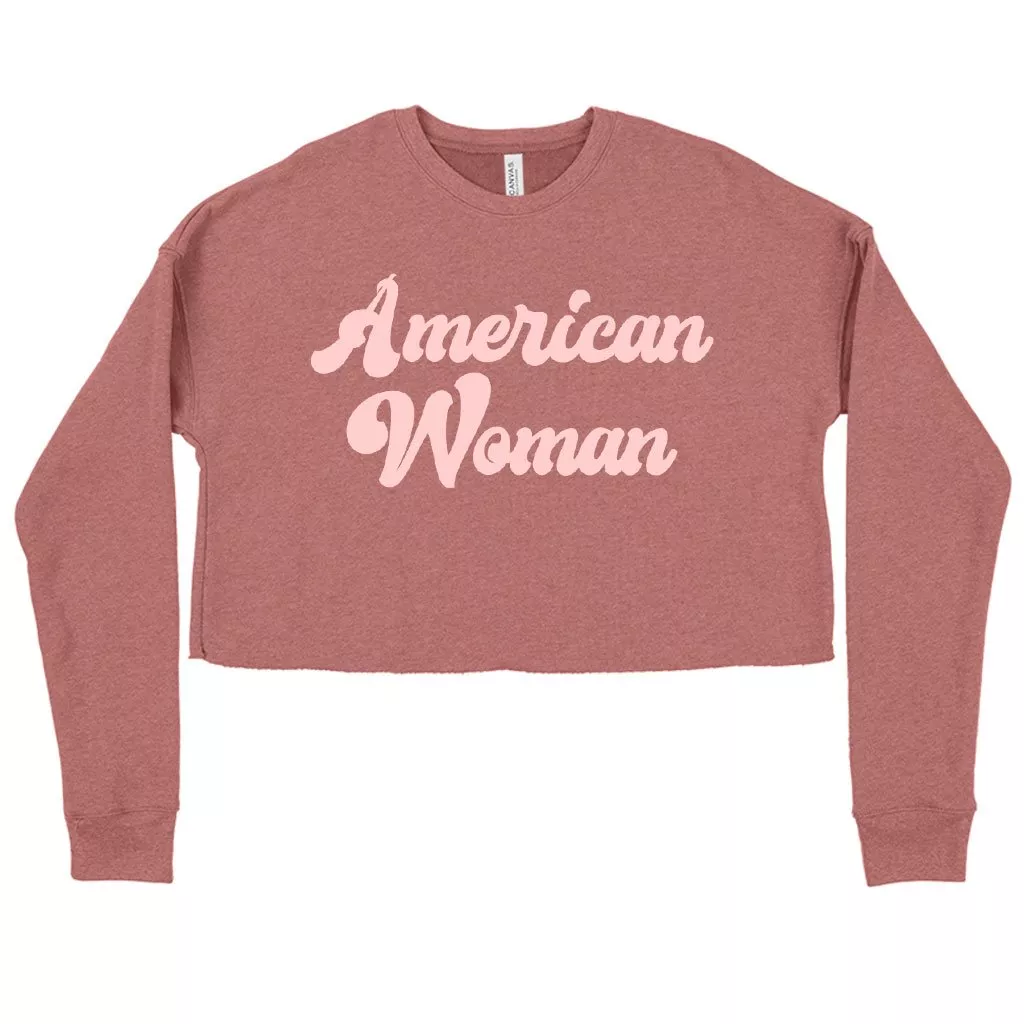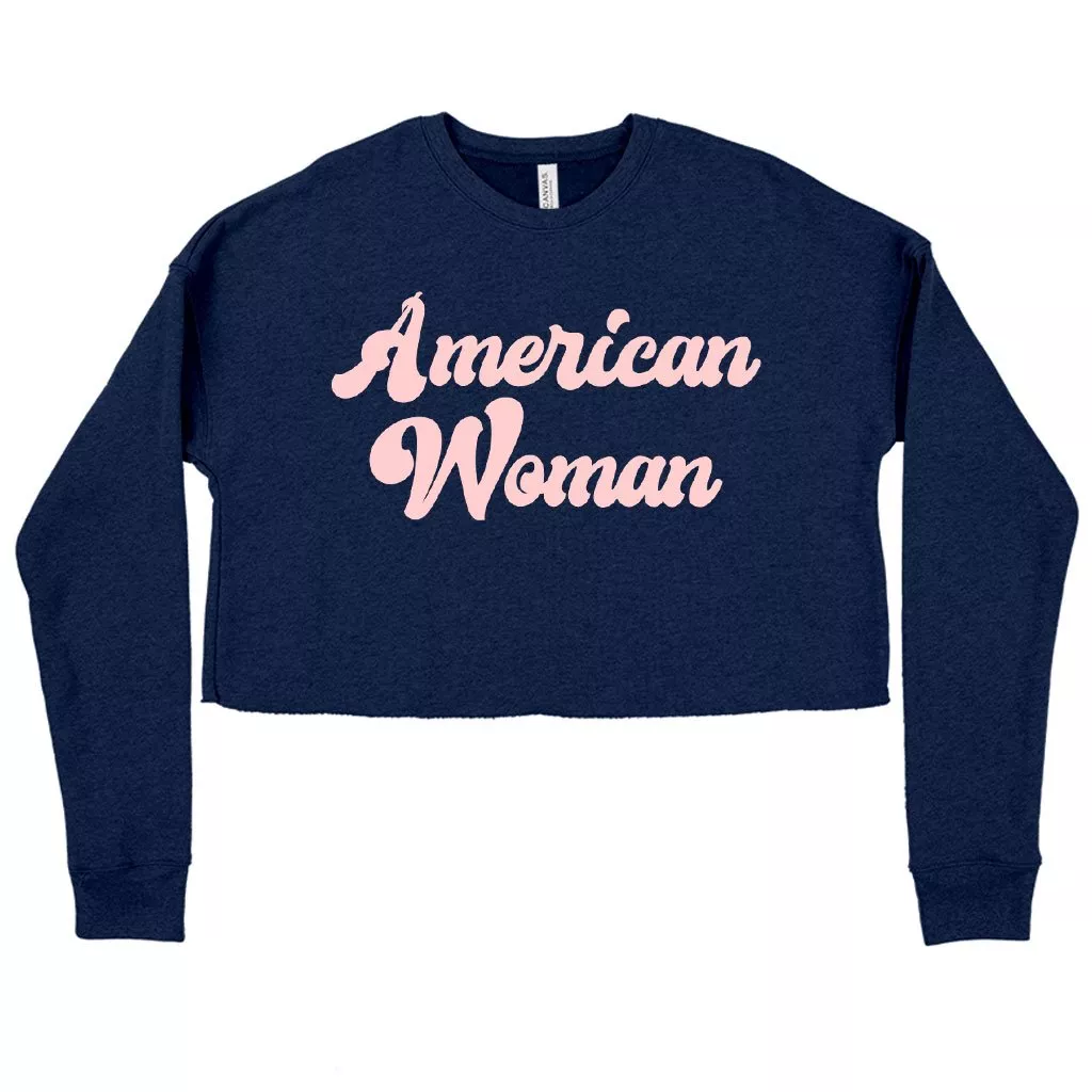 Women’s Cropped Fleece American Woman Sweatshirt – Patriotic Sweatshirts for Women