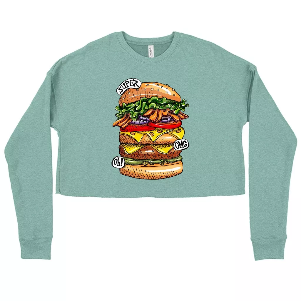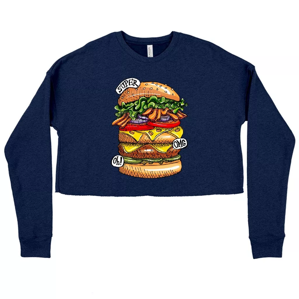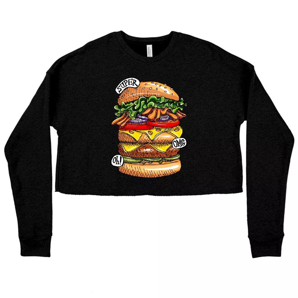 Women’s Cropped Fleece Burger Sweatshirt – Cool Food Sweatshirts