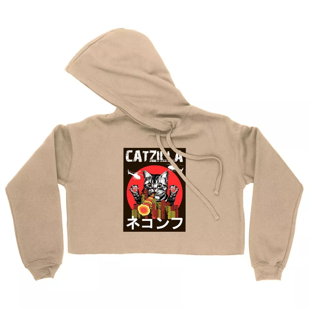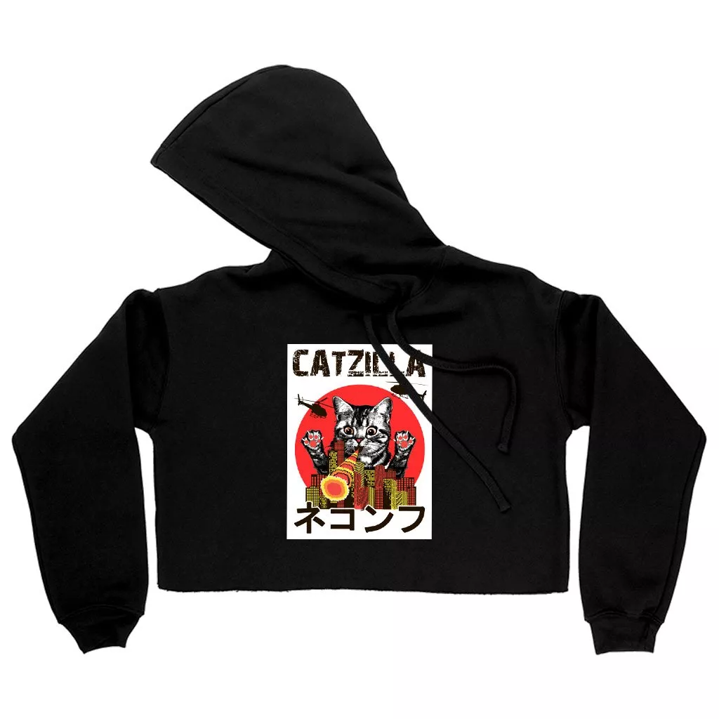 Women’s Cropped Fleece Catzilla Hoodie – Japanese Vintage Hoodie