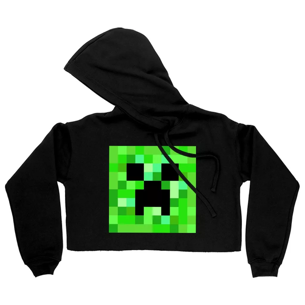 Women’s Cropped Fleece Creeper Hoodie – Minecraft Hoodie