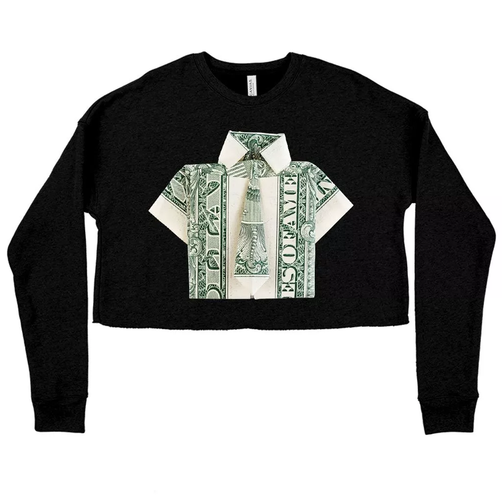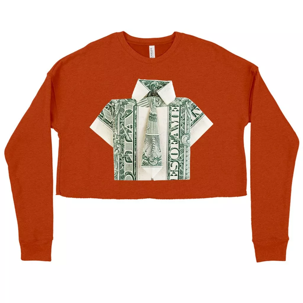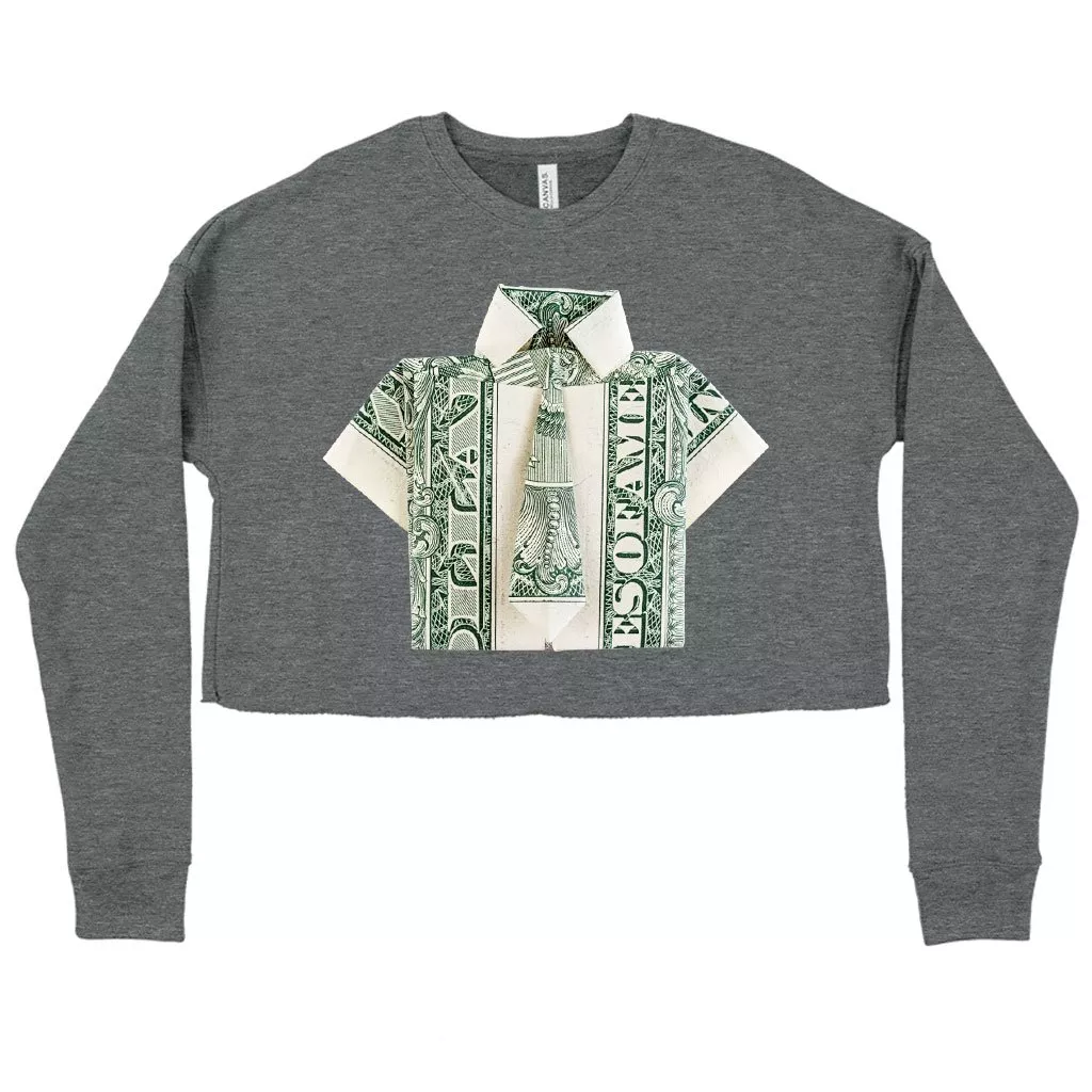 Women’s Cropped Fleece Dollar Origami Sweatshirt – Money Origami