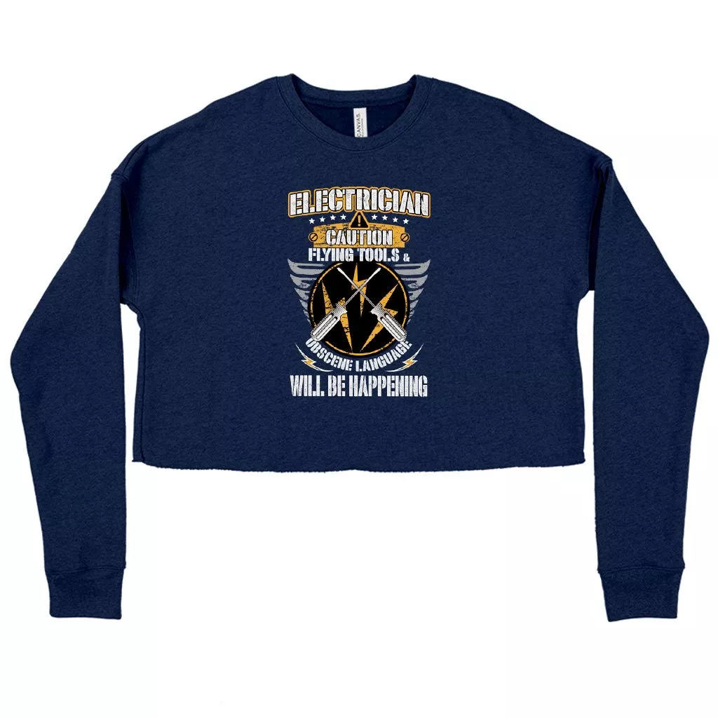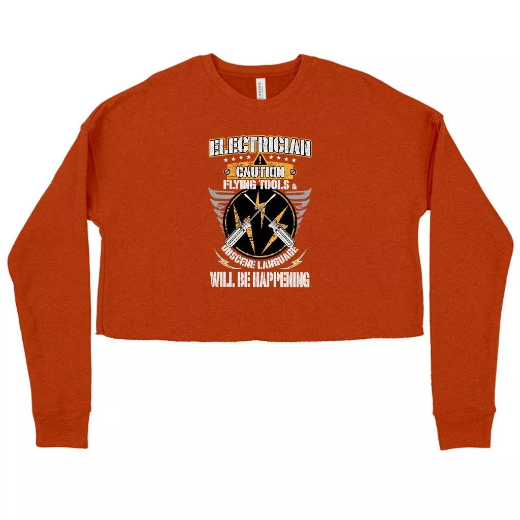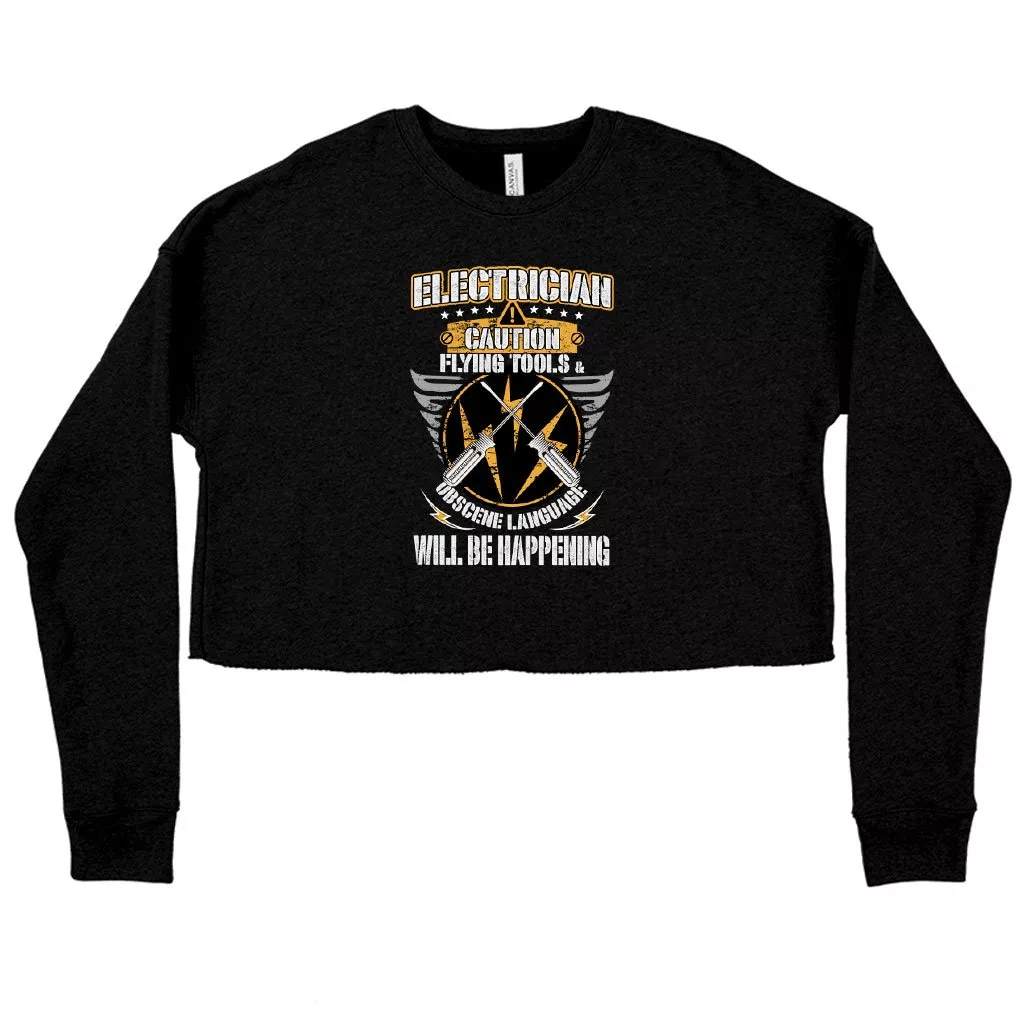 Women’s Cropped Fleece Electrician Caution Sweatshirt – Electrician Sweatshirt Design