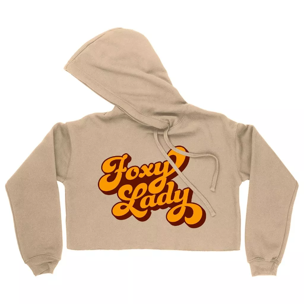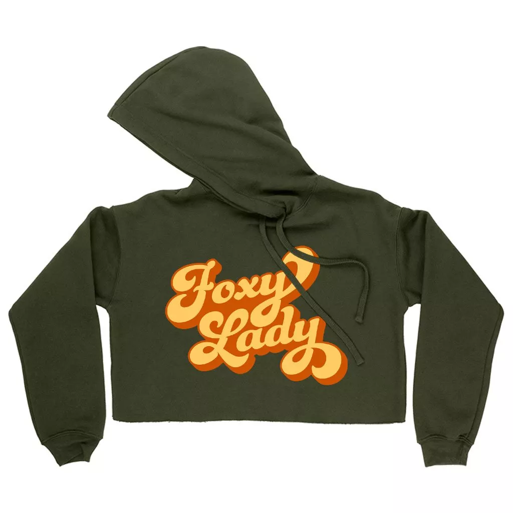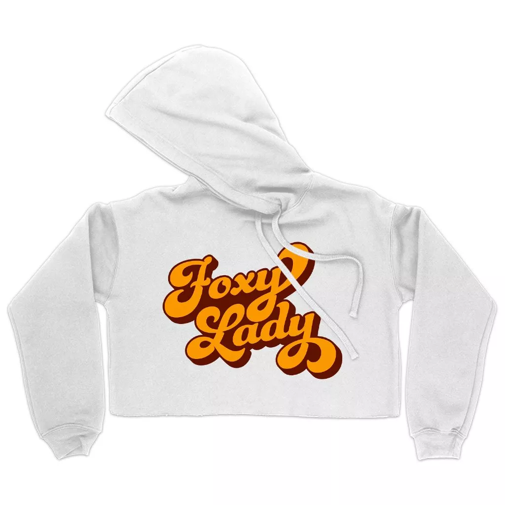 Women’s Cropped Fleece Foxy Lady Hoodie – 70s Women’s Hoodies – Vintage Retro Design Hoodie