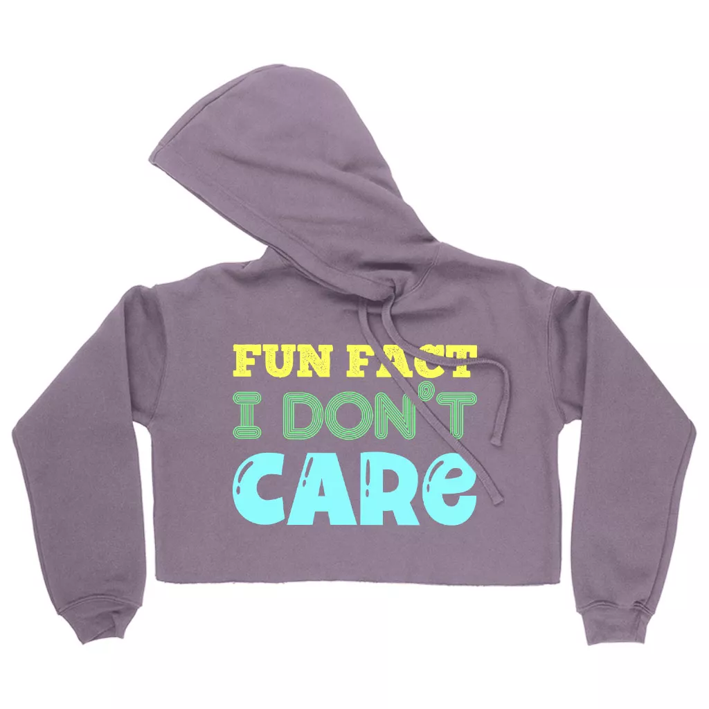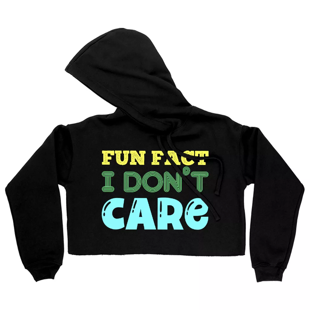 Women’s Cropped Fleece Fun Fact I Don’t Care Hoodie – Sarcastic Hoodies