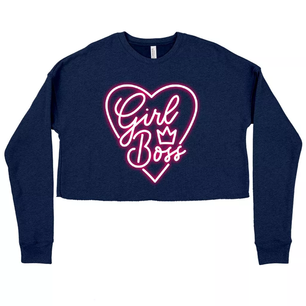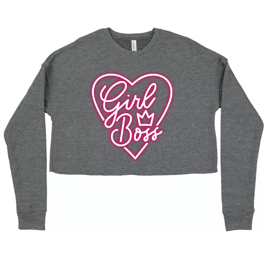 Women’s Cropped Fleece Girl Boss Sweatshirt – Graphic Sweatshirt