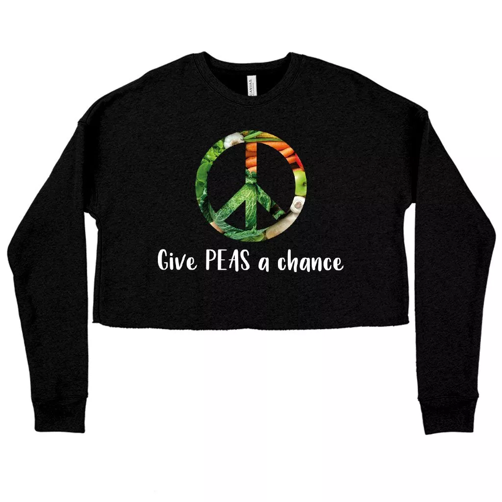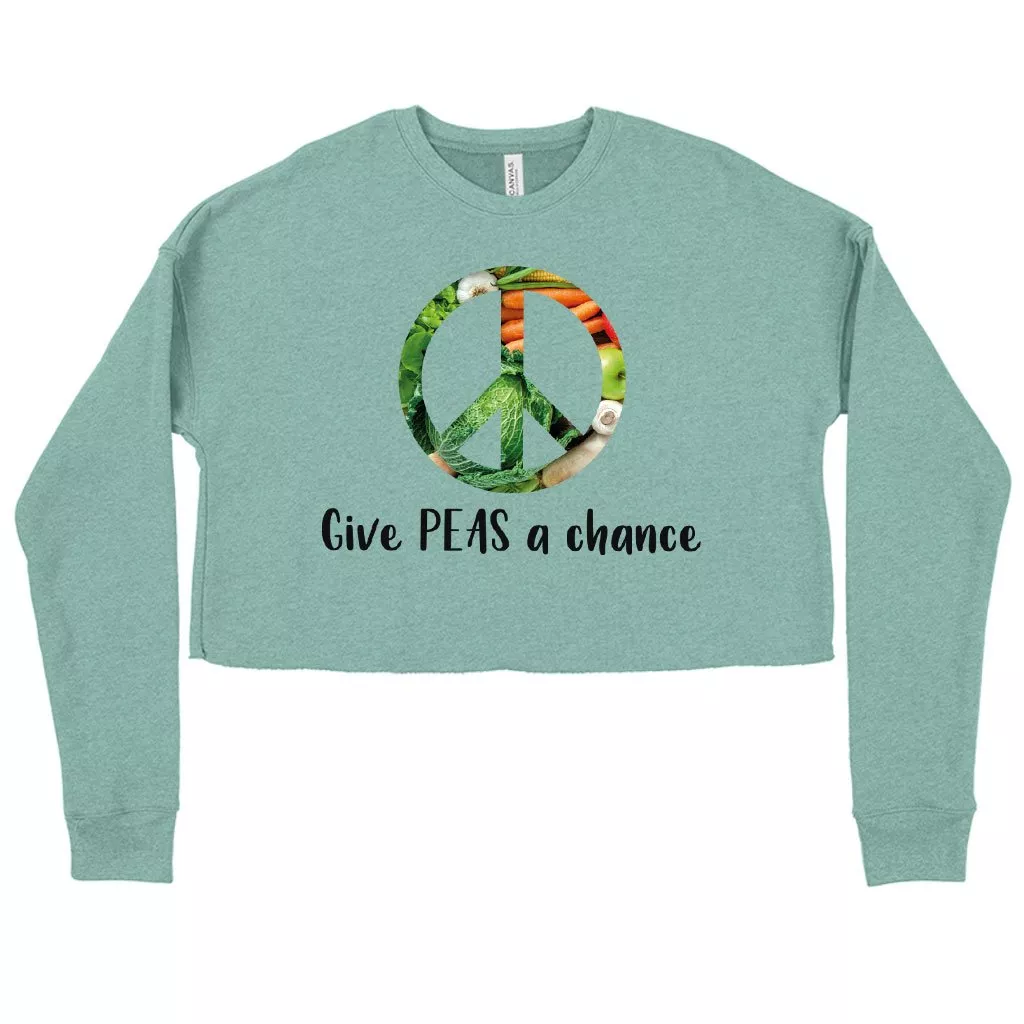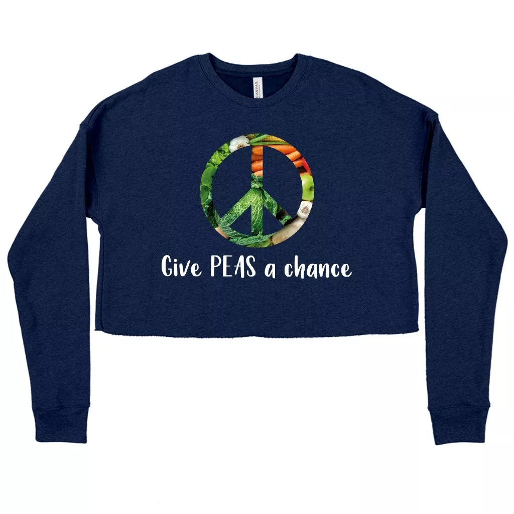 Women’s Cropped Fleece Give Peas a Chance Funny Vegan Sweatshirt – Vegan Print Sweatshirt – Vegetarian Funny Sweatshirts