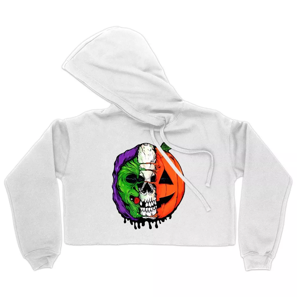 Women’s Cropped Fleece Halloween 3 Hoodie – Halloween 3 Silver Shamrock Masks Hoodie