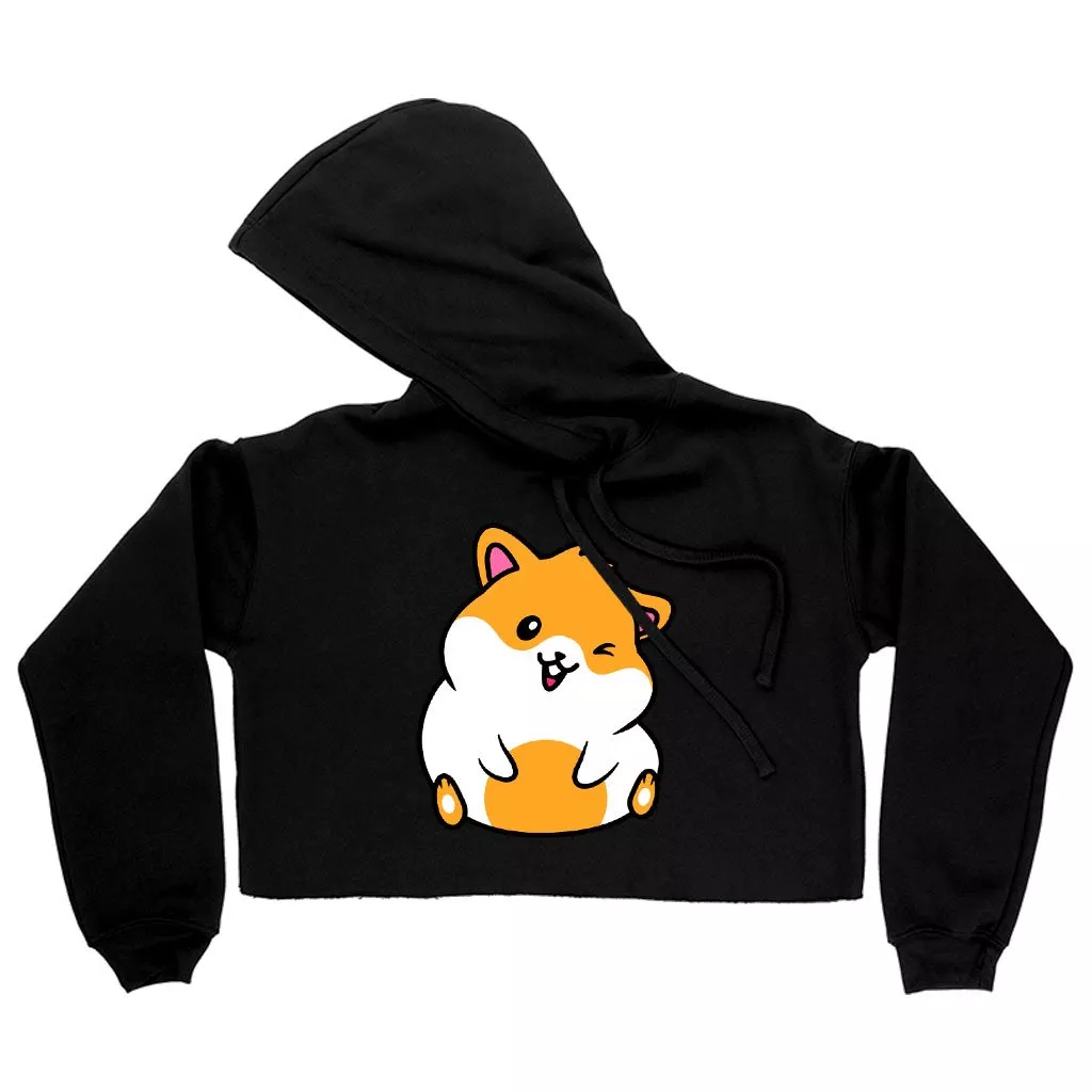 Women’s Cropped Fleece Hamster Hoodie – Funny Animal Hoodie