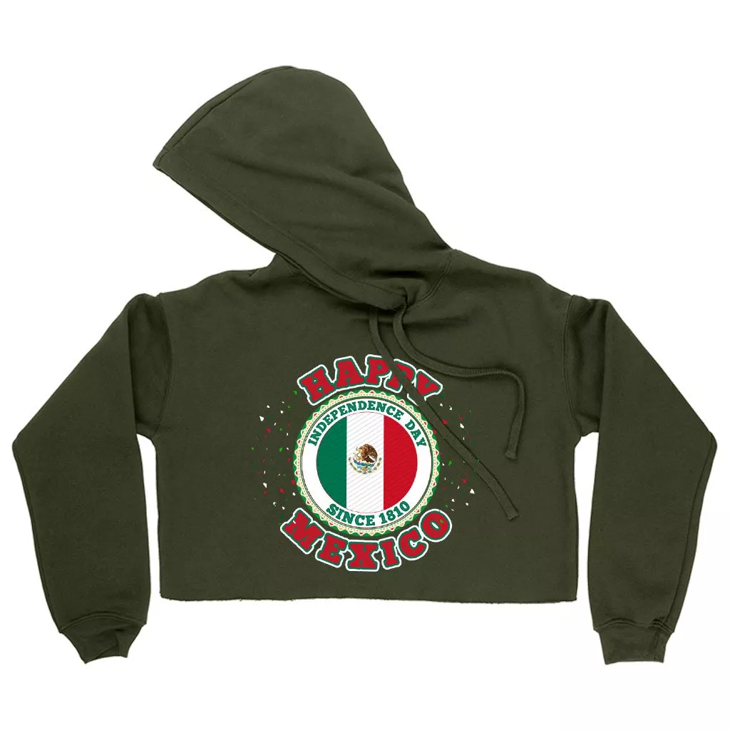 Women’s Cropped Fleece Happy Independence Day Mexico Hoodie – Mexico Hoodie – Mexican Independence Day Hoodies