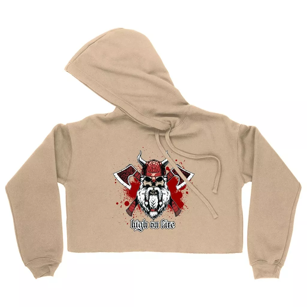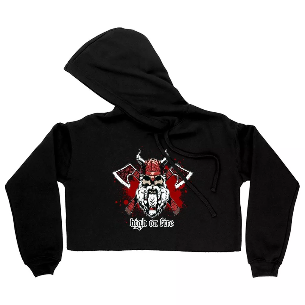 Women’s Cropped Fleece High on Fire Hoodie – Metal Hoodie