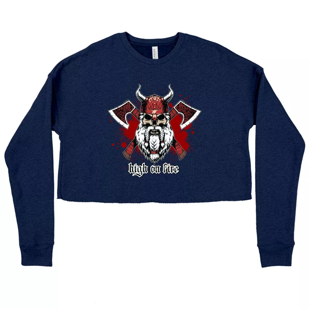Women’s Cropped Fleece High on Fire Sweatshirt – Metal Sweatshirt